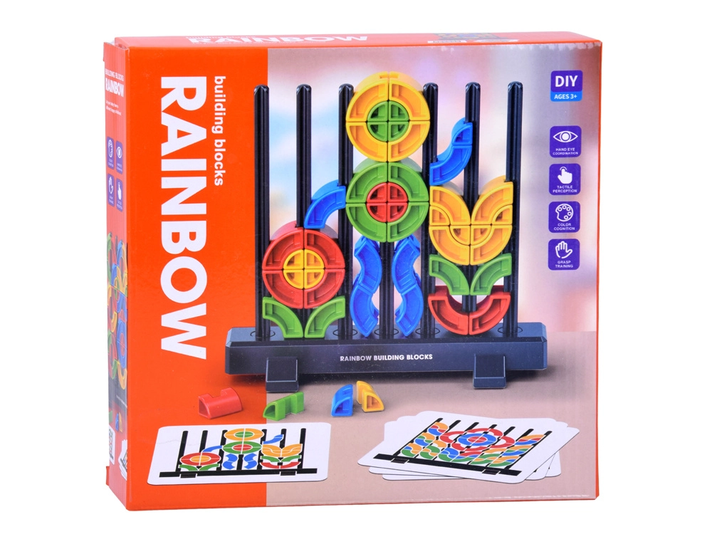 Ova kreativna edukativna slagalica razvija dječju maštu i vještine: navlačenjem i slojevitim slaganjem obojenih elemenata na štapiće djeca vježbaju preciznost prstiju, koncentraciju i vizualnu percepciju. Zahvaljujući karticama s predlošcima početnici mogu lako započeti i postupno povećavati težinu.