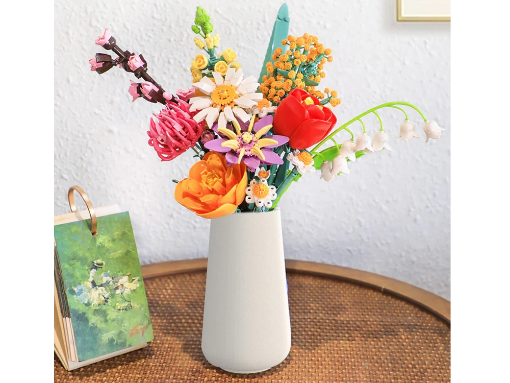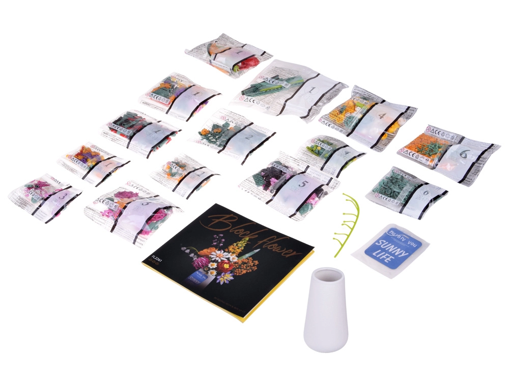 Konstruktorski set podijeljen je u numerirane vrećice i dopunjen slikovnim uputama korak po korak, pa je prikladan i za iskusne i za početnike. Gotov buket visok je približno 30 cm, odlično pristaje na stol, policu ili komodu i pruža sate opuštajuće i kreativne zabave.