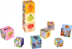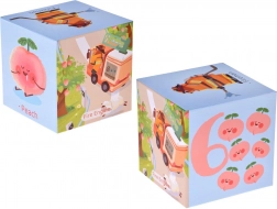 Stvarajte beskrajne kombinacije: gradite visoke tornjeve, slažite staze s vozilima, poredajte brojeve i brojite voće. Svaka kocka otisnuta je živopisnim scenama koje potiču koordinaciju oko–ruka, prostornu percepciju i kreativnost. Zahvaljujući engleskim natpisima djeca na razigran način usvajaju osnovne riječi.