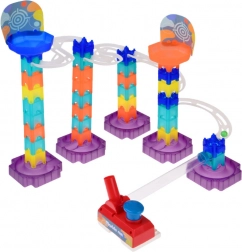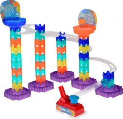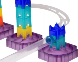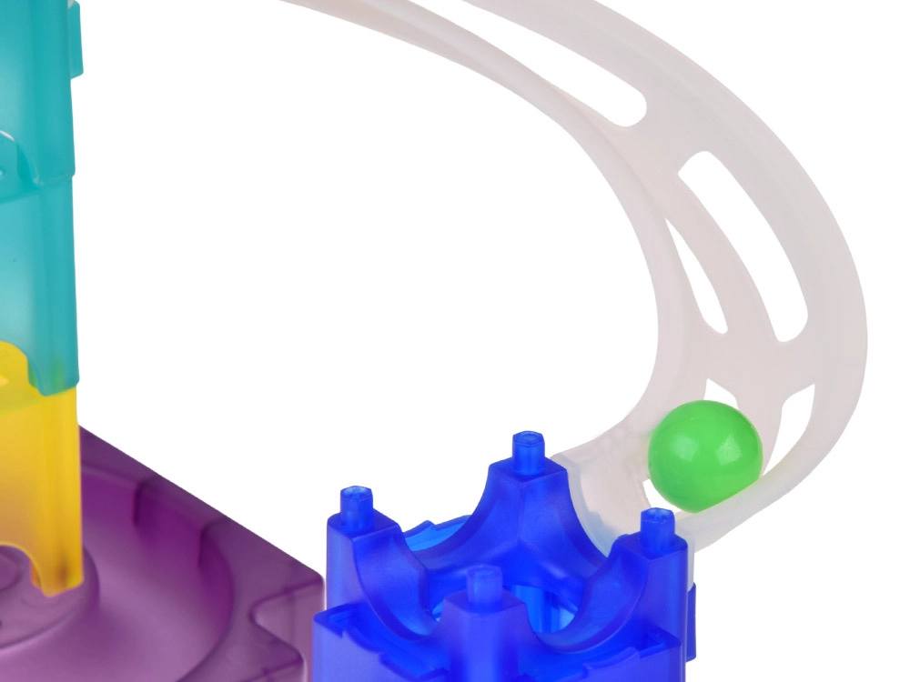 Ovaj kreativni komplet omogućuje slobodno kombiniranje modula i stvaranje originalnih trasa. Zahvaljujući prozirnim stazama djeca vide kretanje kuglica u stvarnom vremenu i prirodno usvajaju principe gravitacije, brzine i uzroka i posljedice. Robusne baze i klik-spojnice osiguravaju stabilnost i jednostavne preinake.