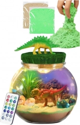 Magični terarij s motivom dinosaura omogućuje djeci osmisliti vlastitu scenu s pijeskom, biljkama, kamenčićima i figuricama. Zahvaljujući LED rasvjeti s 13 boja i 3 načina rada mogu prilagoditi ugođaj prema raspoloženju i stvoriti dojmljivu dekoraciju koja noću nježno svijetli.