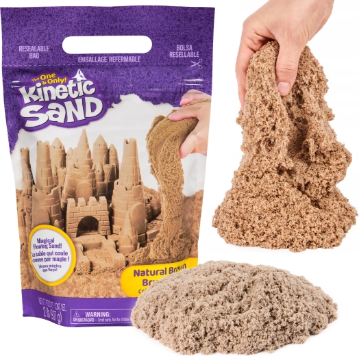 Kinetički pijesak u smeđoj nijansi donosi djeci i odraslima umirujuće senzorno iskustvo. Ugodno je rasipan, ali kompaktan – polako klizi među prstima, a istovremeno odlično zadržava oblik, pa možete stvarati slova, tornjeve, oblike i detaljne građevine. Ne presušuje, lako se čisti i pri igri ne praši.