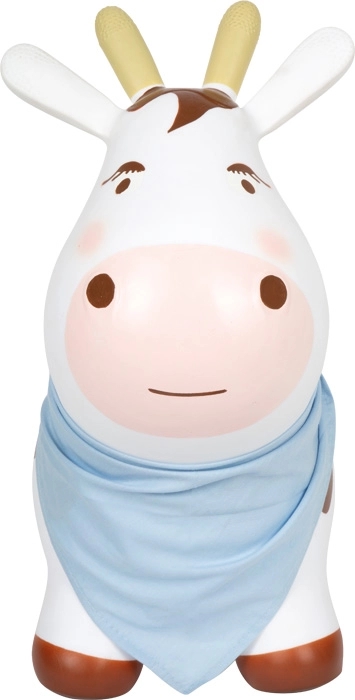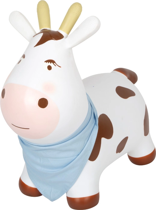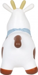 Napuhujuća skakajuća kravica zabavna je i praktična igračka za razvoj grube motorike. Djeca će zavoljeti njezin ljupki dizajn s plavim šalom, dok će roditelji cijeniti jednostavno održavanje i brzo napuhavanje pomoću priložene pumpice. Skakajuće pomagalo pomaže jačati mišiće leđa, trupa i nogu te prirodno trenira ravnotežu i koordinaciju.