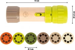 Ova moderna istraživačka igračka kombinira praktičnu svjetiljku s projekcijskim projektorom koji prikazuje edukativne motive na zidove, strop ili pod. Djeca se kroz igru upoznaju s biologijom, botanikom i astronomijom, dok vježbaju finu motoriku izmjenom slikovnih diskova.