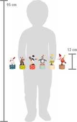 Veseli motivi poput snjegovića, pingvina, Djeda Božićnjaka, soba, polarnog medvjeda ili božićnog drvca uljepšat će svako blagdansko razdoblje. Figurice su od kvalitetnog, čvrstog drveta i zahvaljujući dimenzijama savršeno pristaju u dječje ručice. Nježnim pritiskom na postolje figurica „zapleše” i donosi puno radosti.