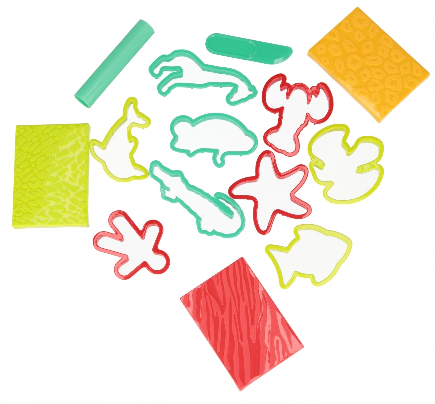 Različiti kalupi i teksturirani elementi omogućuju izradu životinja i uzoraka. Idealan izbor za razvoj mašte i fine motorike.