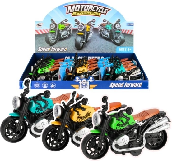 Stilski retro motor duljine 13 cm oduševit će sve male ljubitelje brzih strojeva. Dostupan je u tri varijante boja i idealan je za dinamičnu igru kod kuće i na otvorenom. Podržava maštu, igru uloga i razvoj fine motorike. Proizvod se šalje nasumičnim odabirom, namijenjen djeci od 3 godine. Cijena za 1 komad.