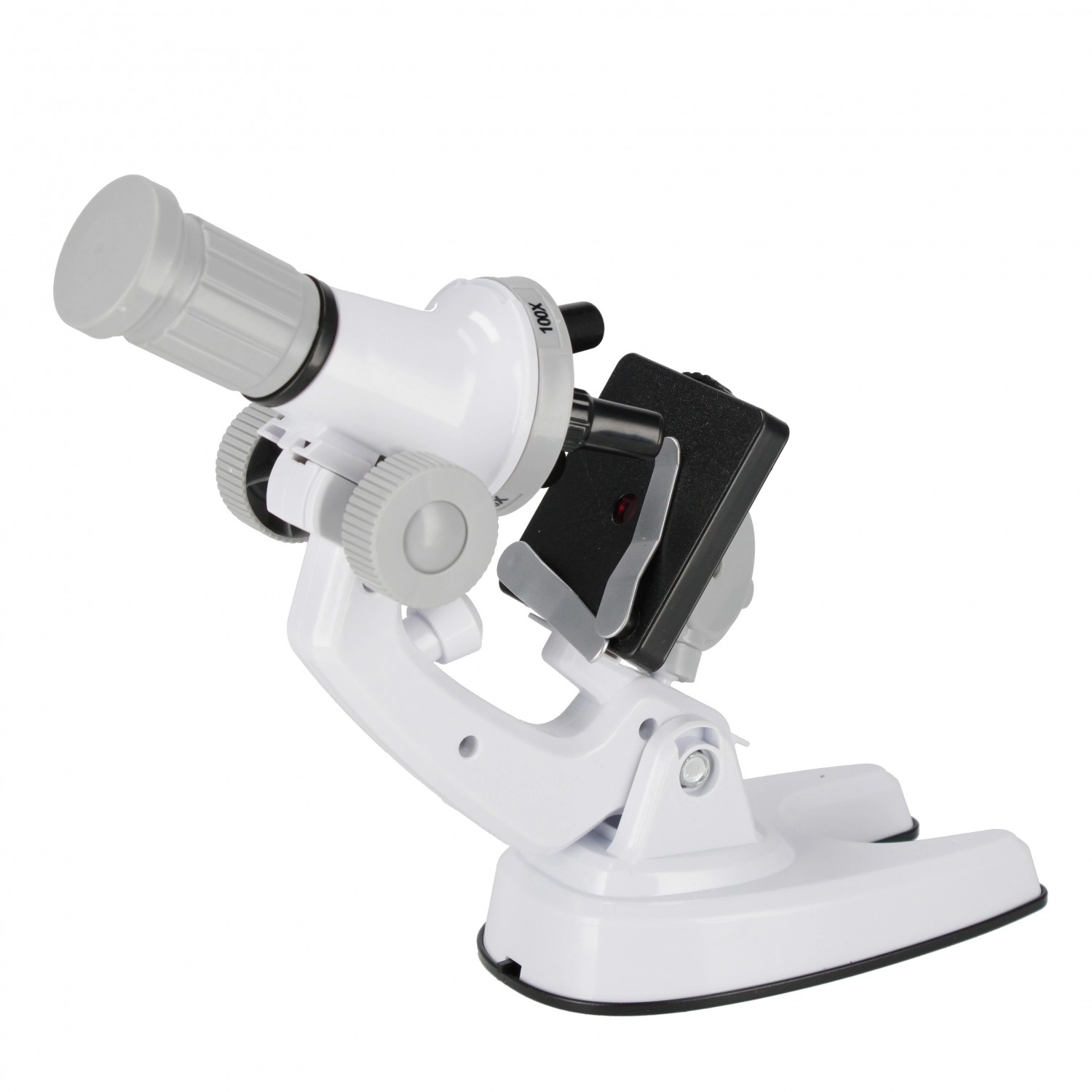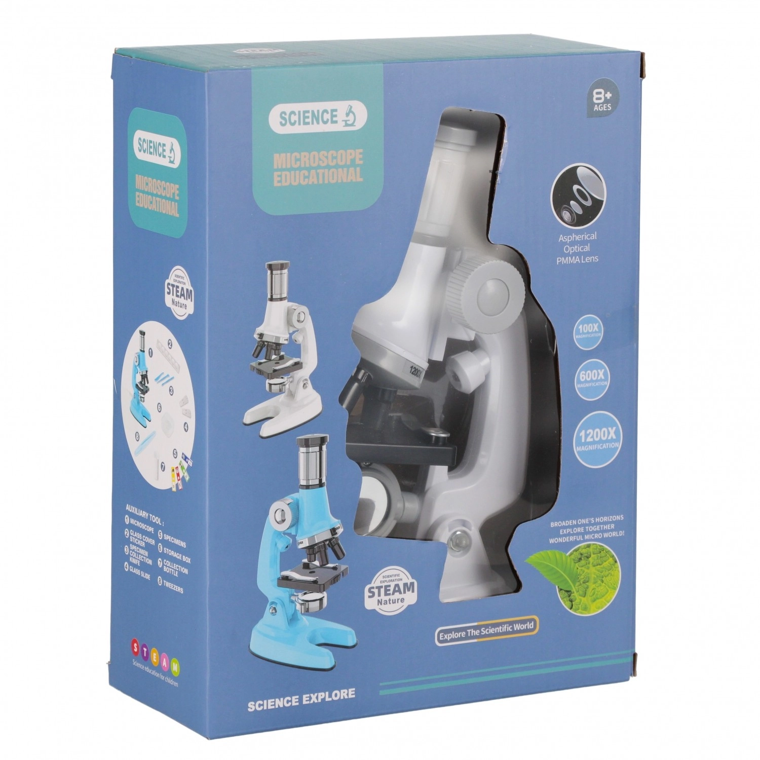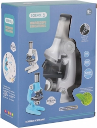 • Kompletan set: mikroskop, 1× pinceta, 3× nožići/pripremne pločice, 2× epruvete, 1× kutijica, 4× istraživačke šablone s crtežima, 4× prazne šablone, upute