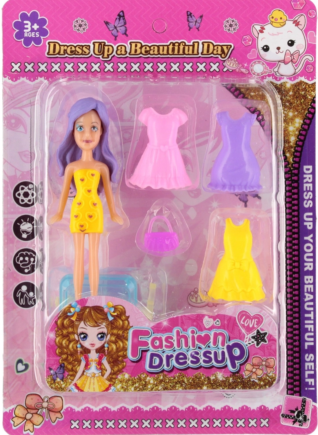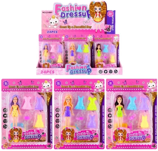 Preslatka lutka za oblačenje s dodacima donosi djeci puno zabave i kreativnosti. Sadrži tri različite haljine i torbicu, pa djeca mogu stvarati vlastite modne kombinacije. Sjajna igračka za male stilistice koje vole svijet mode i lutaka. Mješavina varijanti boja. Prikladno za djecu od 3 godine. Cijena za komad.