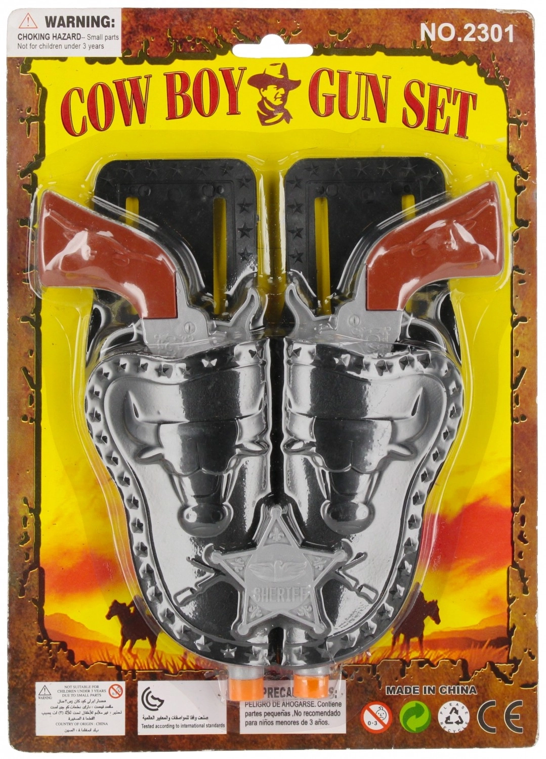 Postanite mali junak Divljeg zapada! Ovaj kaubojski set sadrži 2 pištolja, 2 futrole i značku šerifa. Idealan je za tematske igre, potiče razvoj mašte i uloga te je prikladan za djecu od 3 godine. Cijena je za 1 komad.