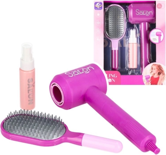 Sve što djeci treba: fen, četka, češalj, sprej i dodatni pribor u atraktivnoj ružičastoj izvedbi – idealno za igru pretvaranja.