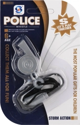 Dječja policijska zviždaljka sa špagom odlična je igračka za male čuvare reda. Laka je, izdržljiva i sigurna za nošenje oko vrata. Prikladna je za igru policajca, trenera i organizatora igara te odlično nadopunjuje dječje kostime i setove. Namijenjeno djeci od 6 godina. Lagana i izdržljiva, praktična vrpca za vrat, izražajan zvuk.