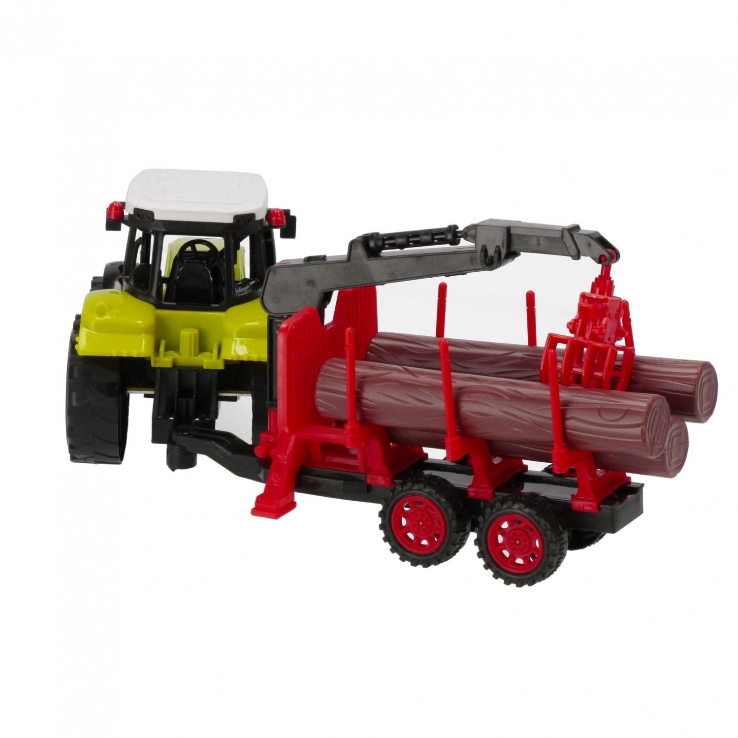Ovaj detaljno izrađen traktor sa šumarskom prikolicom omogućuje djeci prevoziti “trupce”, utovarivati i istovarivati pomoću pokretne dizalice te uživati u satima kreativne igre. Zahvaljujući robusnoj plastici i čvrstim kolima, sjajno je rješenje za igru u domu i na otvorenom.