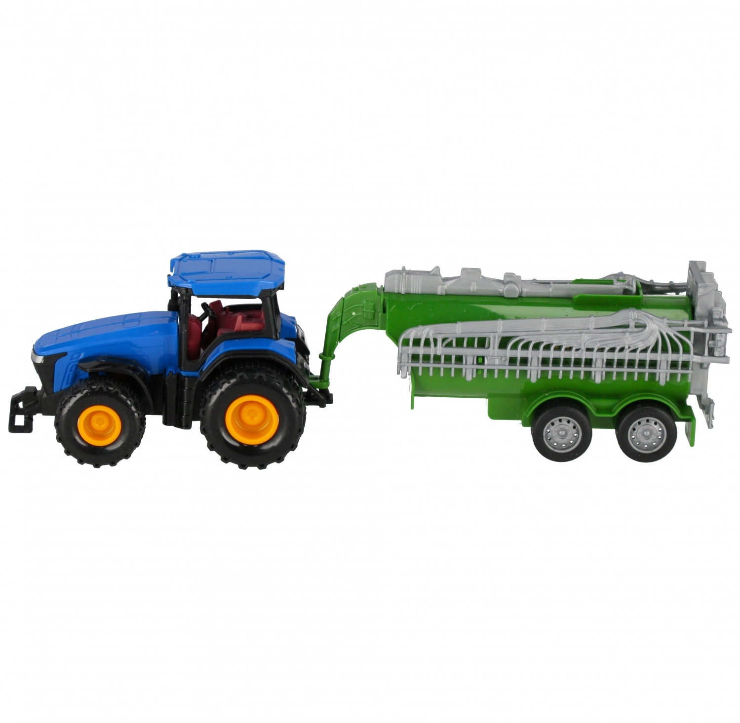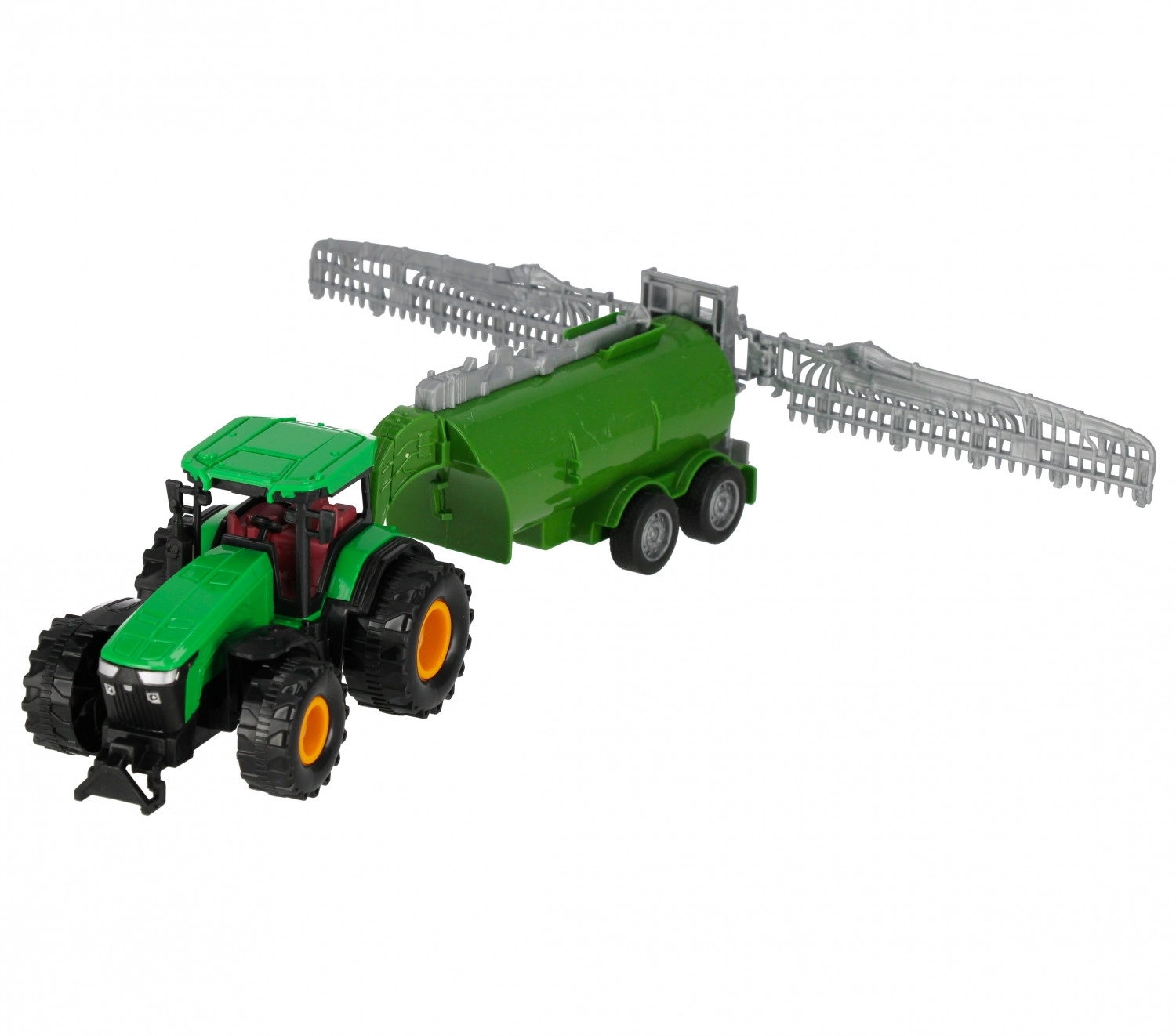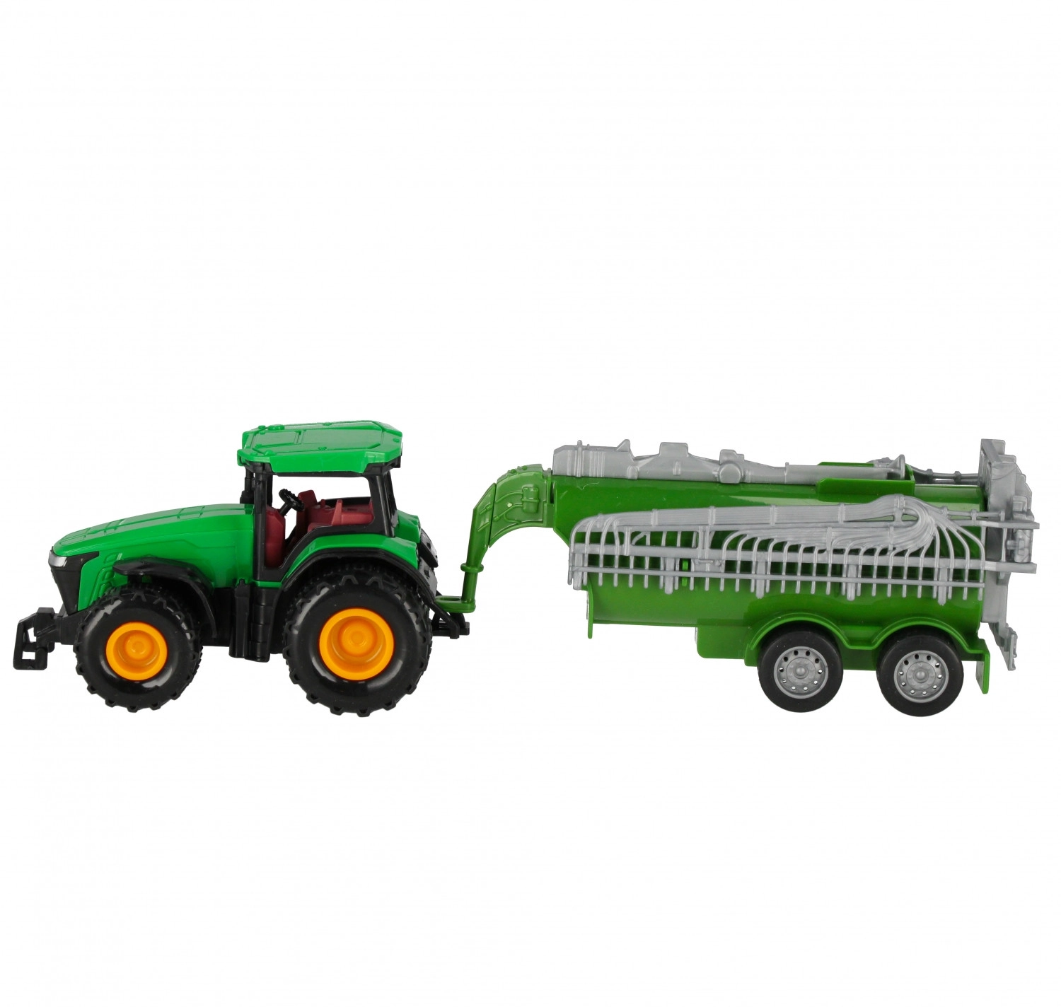 Ovaj detaljno izrađen poljoprivredni stroj s cisternom prikolicom donosi djeci autentičnu farmersku zabavu. Zahvaljujući pull-back funkciji dovoljno je povući unatrag i pustiti – traktor kreće naprijed i potiče dinamičnu igru. Pokretni dijelovi, poput otklopnih ili sklopivih elemenata prikolice i realističnih detalja kabine, pozivaju na istraživanje te razvijaju motoriku i maštu.