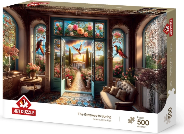 Otkrijte čar proljetne atmosfere uz slagalicu „Vrata u proljeće”. Ovaj motiv razveselit će ljubitelje prirode i mirnog slaganja, a zahvaljujući 500 dijelova prikladan je i za početnike i za napredne. Gotova slika dimenzija 48 × 34 cm odlično pristaje u okvir.