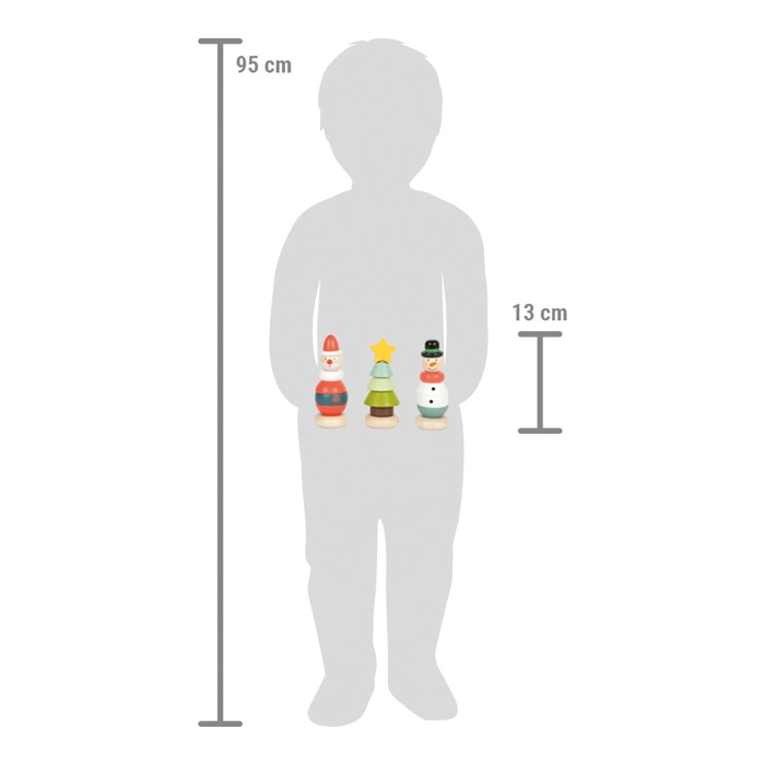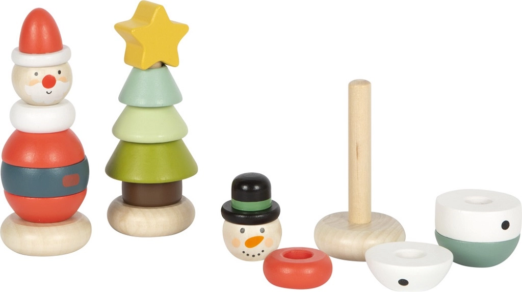 Otkrijte radosno božićno slaganje! Drvene figurice u obliku DJEDA MRAZA, božićnog drvca sa zlatnom zvijezdom i nasmijanog snjegovića sastoje se od više šarenih prstenova i dijelova koji se navlače na čvrsti klin. Igra intuitivno motivira djecu na vježbanje hvata, preciznosti i koncentracije – a pritom stvara prekrasnu blagdansku atmosferu u dječjoj sobi i dnevnom boravku.
