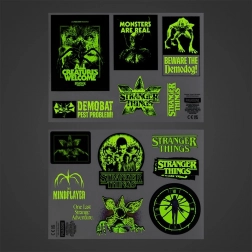Doživite atmosferu Hawkinsa uz ove svjetleće naljepnice Stranger Things. Set sadrži 14 kom naljepnica koje se nakon izlaganja svjetlu zasjaje u mraku i prostorijama, prijenosnicima ili dodacima daju stilski neonski efekt.