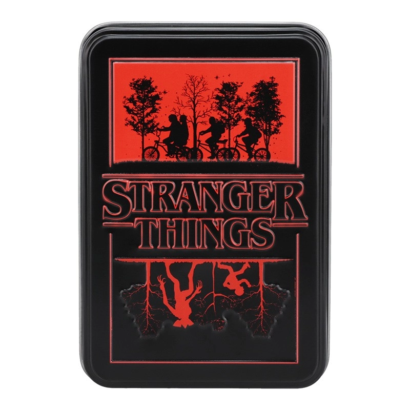 Obožavatelji serije Stranger Things uživat će u klasičnoj kartaškoj zabavi s tematskim pakiranjem u limenoj kutiji. Set sadrži 54 žolike karte idealne za putovanja, zabave i izložbene vitrinske kolekcije.