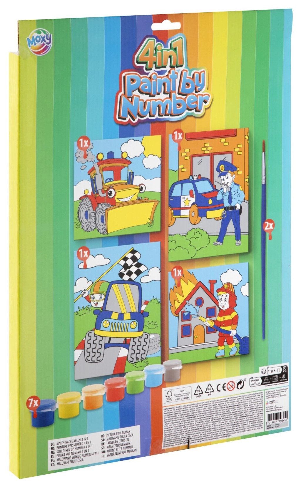 - 4 unaprijed otisnute kartonske slike, set akrilnih boja, kist, upute