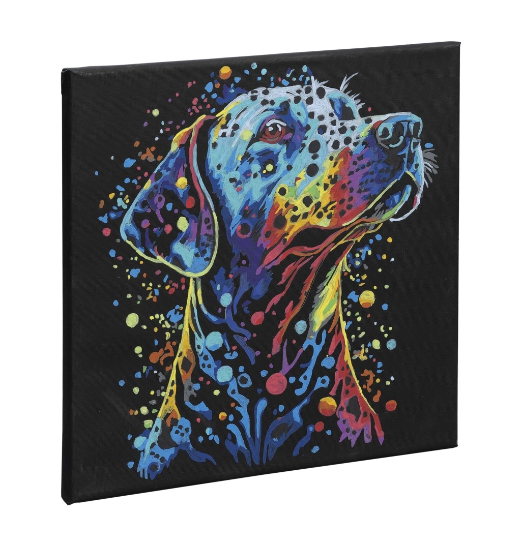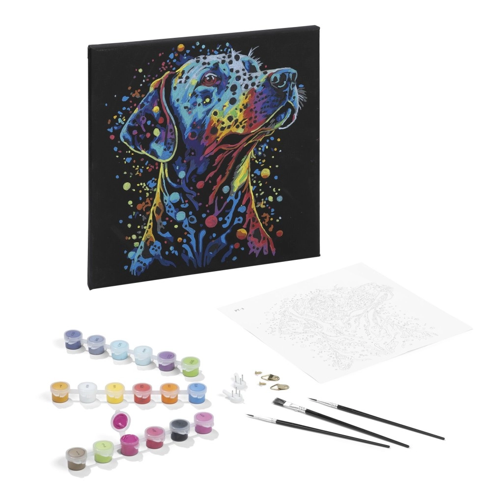 Otkrijte opuštajuće stvaranje s kreativnim setom za slikanje po brojevima. Na crnom platnu s motivom psa lako ćete korak po korak dočarati sliku zahvaljujući numeriranim poljima i priloženim bojama. Jednostavno bojanje, precizni rezultati i upečatljiv kontrast na crnoj podlozi zajamče radost stvaranja i lijepu dekoraciju interijera.