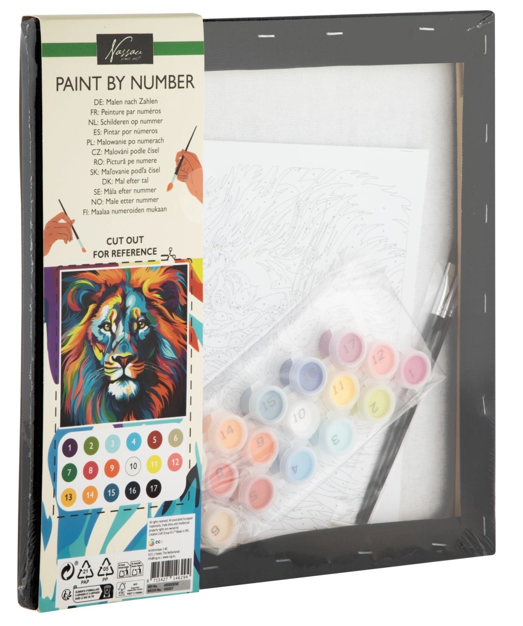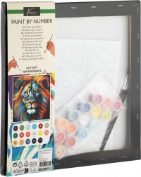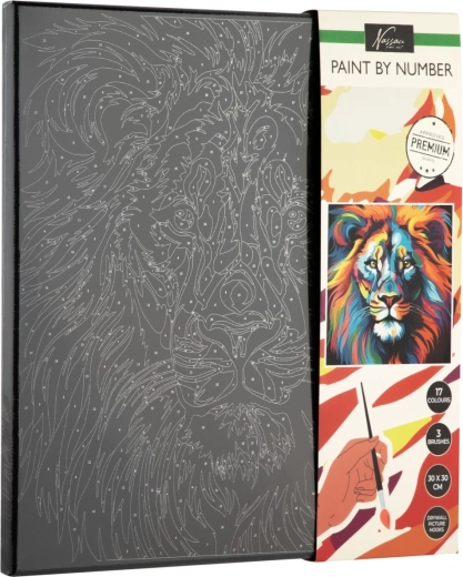 Ovaj kreativni set s motivom veličanstvenog lava na crnom platnu idealan je izbor za djecu i odrasle koji žele stvarati bez složene pripreme. Kontrastna crna pozadina ističe boje, a konačna slika djeluje kao pravo umjetničko djelo. Dovoljno je slijediti brojeve i promatrati kako se motiv korak po korak pretvara u gotovu sliku.