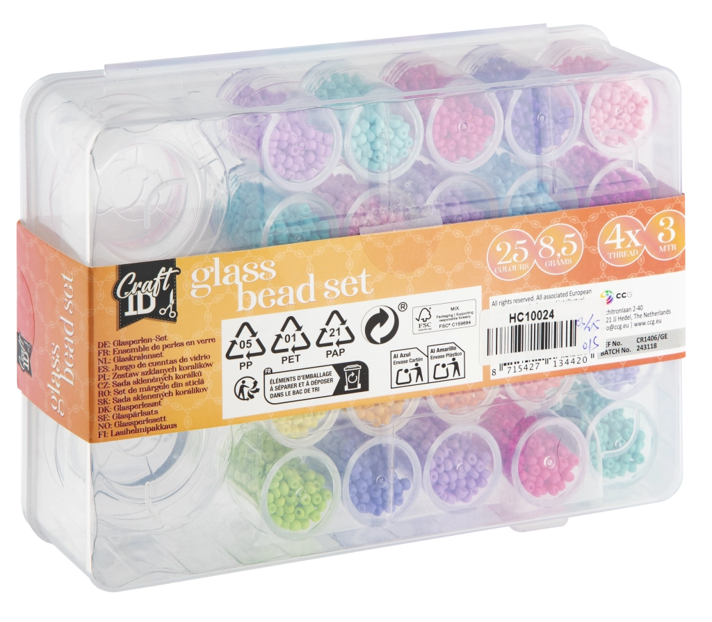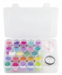 Ovaj veliki set staklenih perlica donosi bogat izbor 25 boja za vaše kreativne projekte. Zahvaljujući prozirnom organizatoru s pretincima, sve nijanse imate pregledno nadohvat ruke i možete brzo kombinirati boje za jedinstvene dizajne.