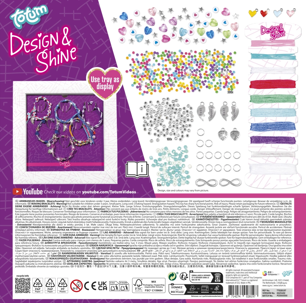 Otkrijte radost ručnog stvaranja i dizajnirajte originalne narukvice prijateljstva koje savršeno izražavaju vaš stil. Set TOTUM Design & Shine nudi bogat izbor perlica, privjesaka i uzica, zahvaljujući kojima lako možete izraditi nekoliko jedinstvenih komada nakita. Odlično za kreativna poslijepodneva, dječje proslave i zajedničko stvaranje s obitelji.