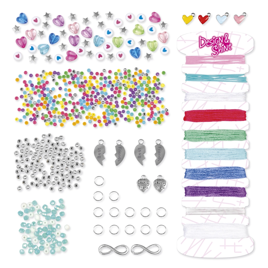 U pakiranju ćete pronaći sjajne, blistave i šarene perlice, izdržljive uzice/žice za udobno nizanje te dekorativne privjeske za završno ukrašavanje. Jednostavne tehnike čvorova i pletenja prikladne su i za početnike. Zahvaljujući podesivim zatvaračima narukvice dobro pristaju na zapešćima različitih veličina.