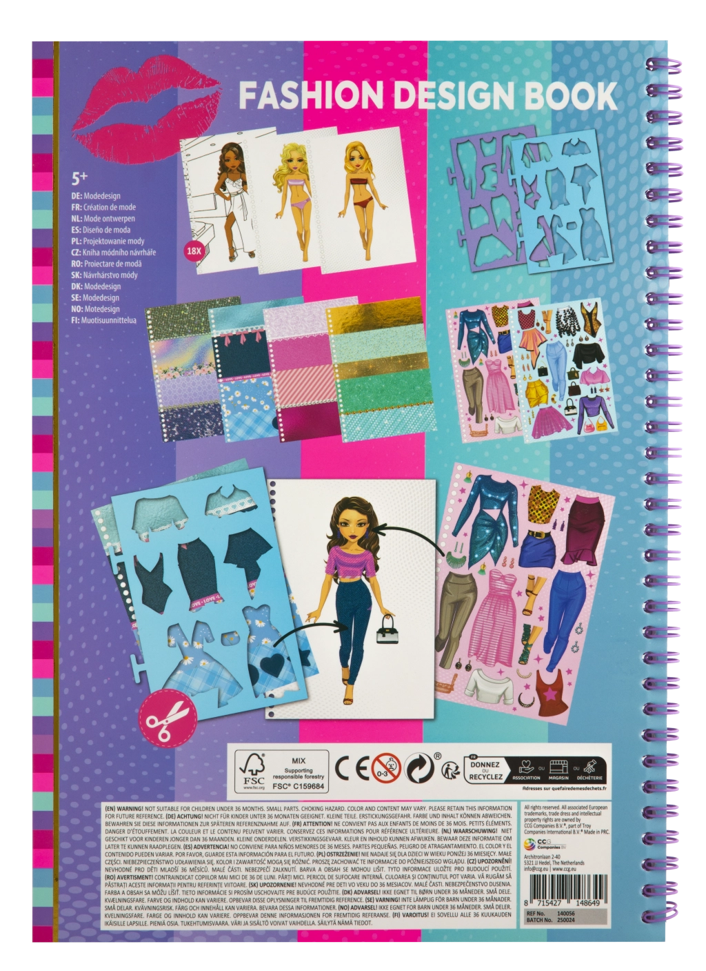 Postanite modna dizajnerica i razvijajte maštu i smisao za stil. Ova bilježnica nudi desetke dizajnerskih stranica s unaprijed otisnutim figurama i siluetama koje olakšavaju prve korake u svijet mode. Zahvaljujući šablonama i bogatom setu naljepnica lako ćete stvoriti jedinstvene kombinacije odjeće, boja i uzoraka.