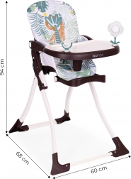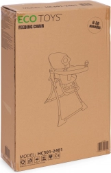 Hranilica ECOTOYS olakšava zajedničko blagovanje te djetetu pruža udobnost i sigurnost. Široka ploha nudi dovoljno prostora za tanjurić, šalicu i igru – dio kompleta su okretna igračka i zvečkica koje zabavljaju i potiču osjetilni razvoj. Sklopiva konstrukcija štedi prostor u manjim interijerima i olakšava transport.