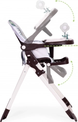 Široka, podesiva i dvoslojna ploha s uklonjivim gornjim umetkom lako se čisti. Integrirane igračke zabavit će dijete dok čeka obrok i poticati razvoj motorike.
