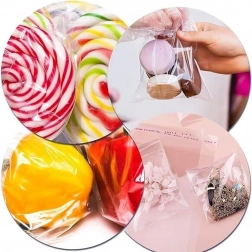 Samoljepljiva traka na preklopu omogućuje brzo zatvaranje bez potrebe za dodatnim pomagalima. Zatvarač dobro drži, a ipak se može lako ponovno otvoriti i ponovno zatvoriti. Vrećice su izvrsne za slastičarske proizvode, nakit, sitnu konfekciju, suvenire i promotivne materijale.
