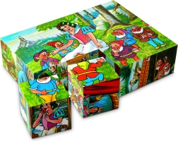 Uz ovu klasiku među igračkama djeca se na zabavan način upoznaju s pričom o Snjeguljici. Drvene kocke su čvrste, ugodne na dodir i zahvaljujući tisku stvaraju nekoliko različitih slika. Odlične su za razvoj koordinacije oko–ruka, strpljenja i logičkog razmišljanja.