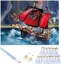 Ovaj kompletan set za slikanje po brojevima idealan je za početnike i napredne. Predtiskano platno s jasno označenim brojevima intuitivno će vas voditi kroz cijeli proces – dovoljno je pridruživati boje brojkama i korak po korak nastat će detaljna slika burnog mora i veličanstvenog gusarskog broda.