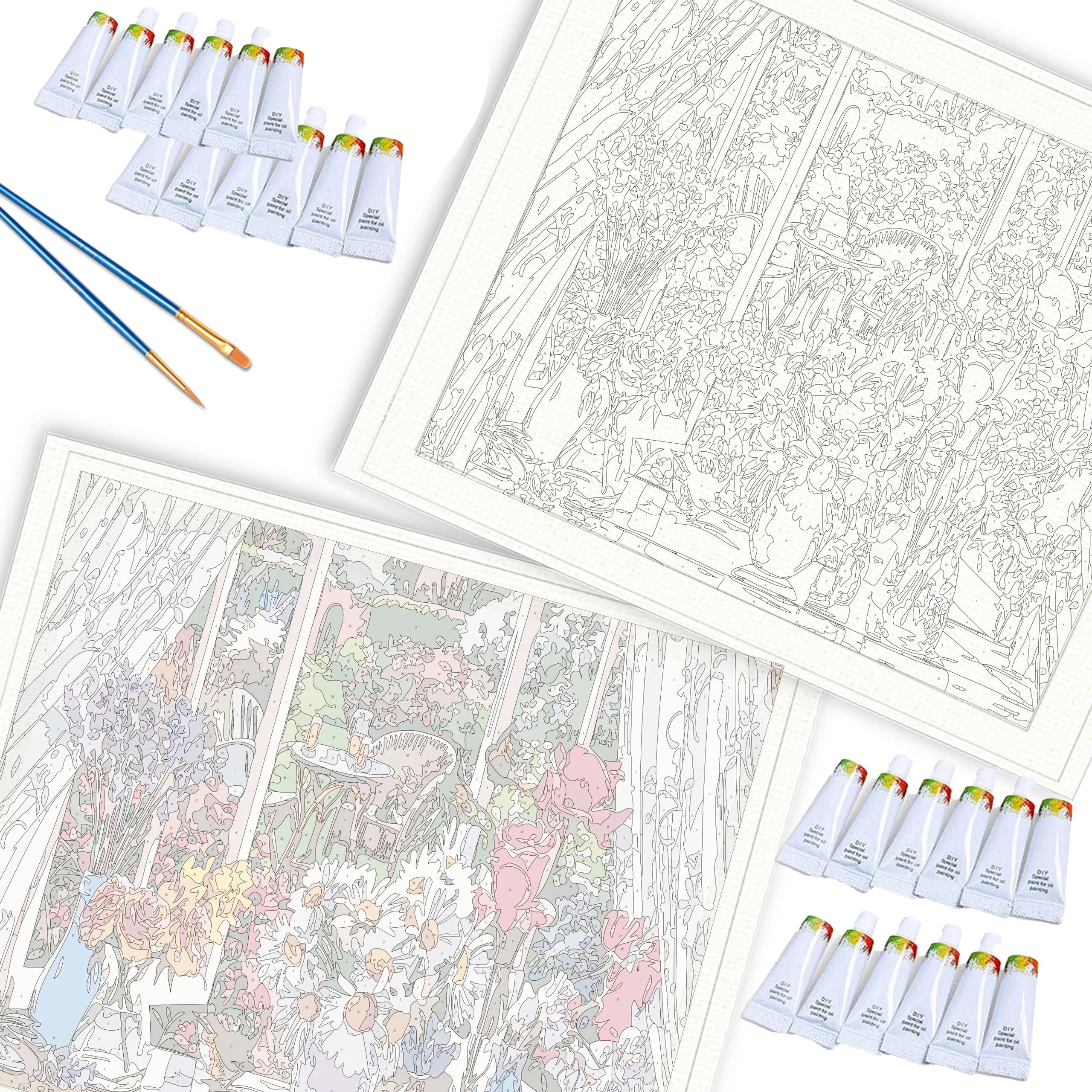 • Kompletno pakiranje: numerirano platno, akrilne boje, kistovi – sve spremno za slikanje.