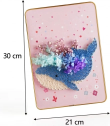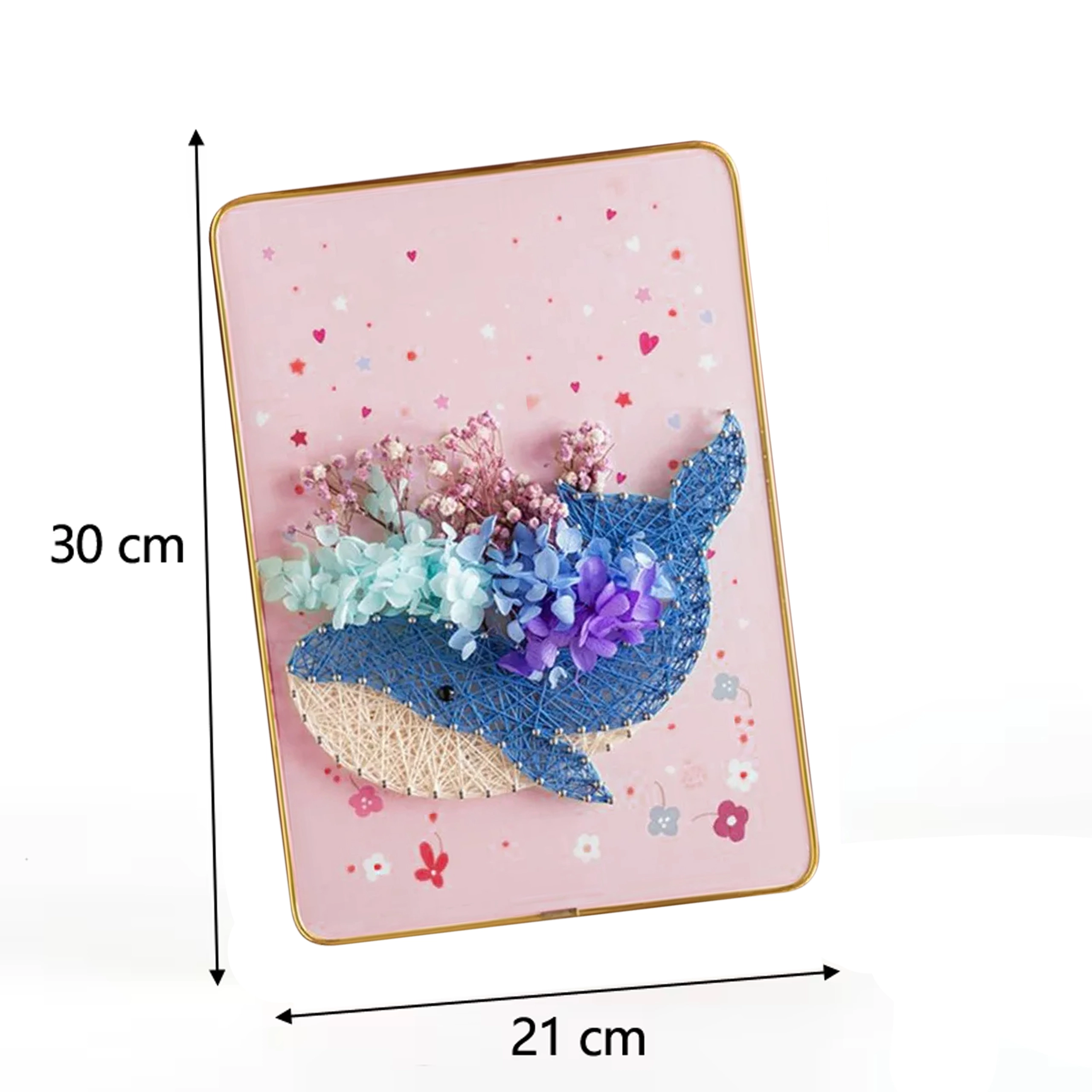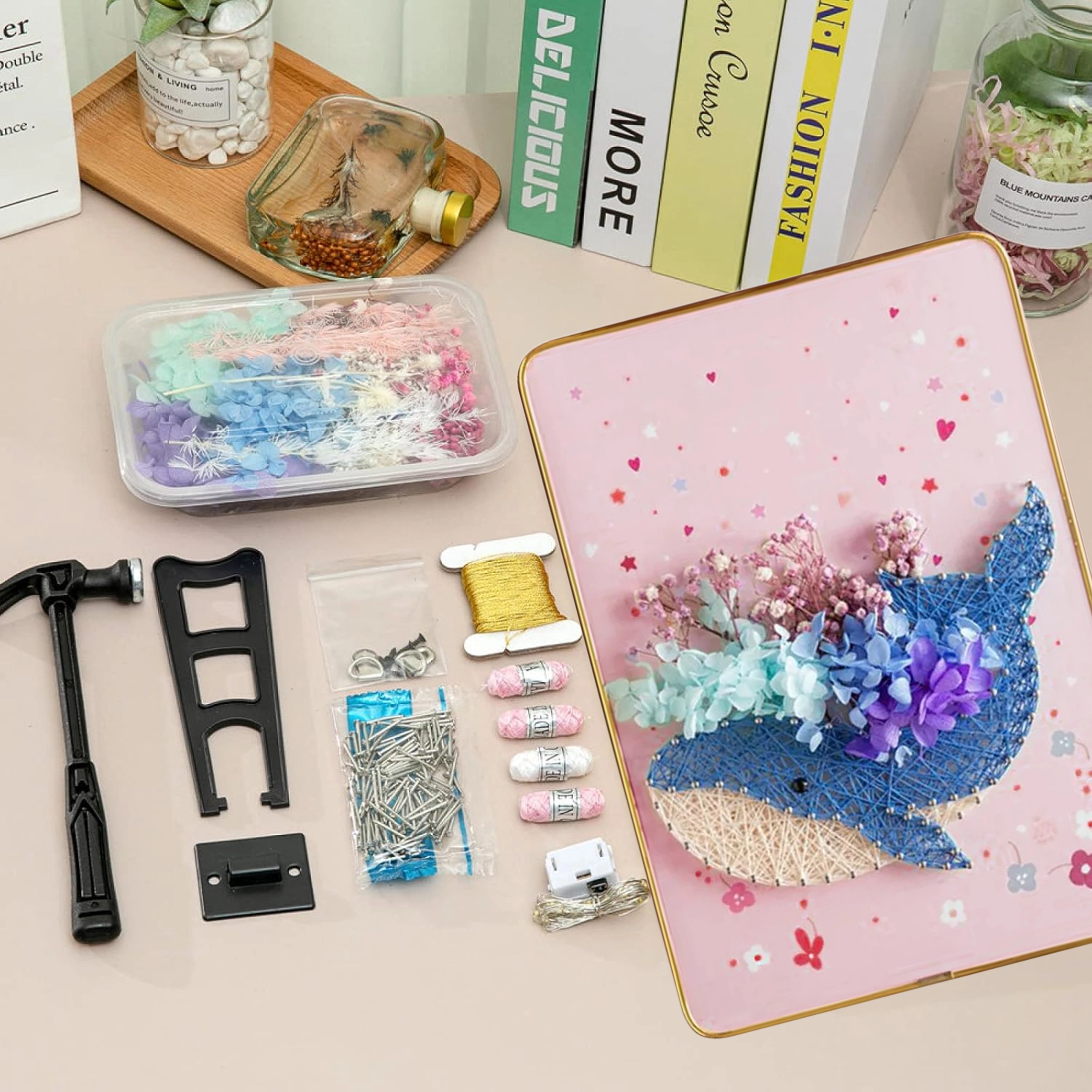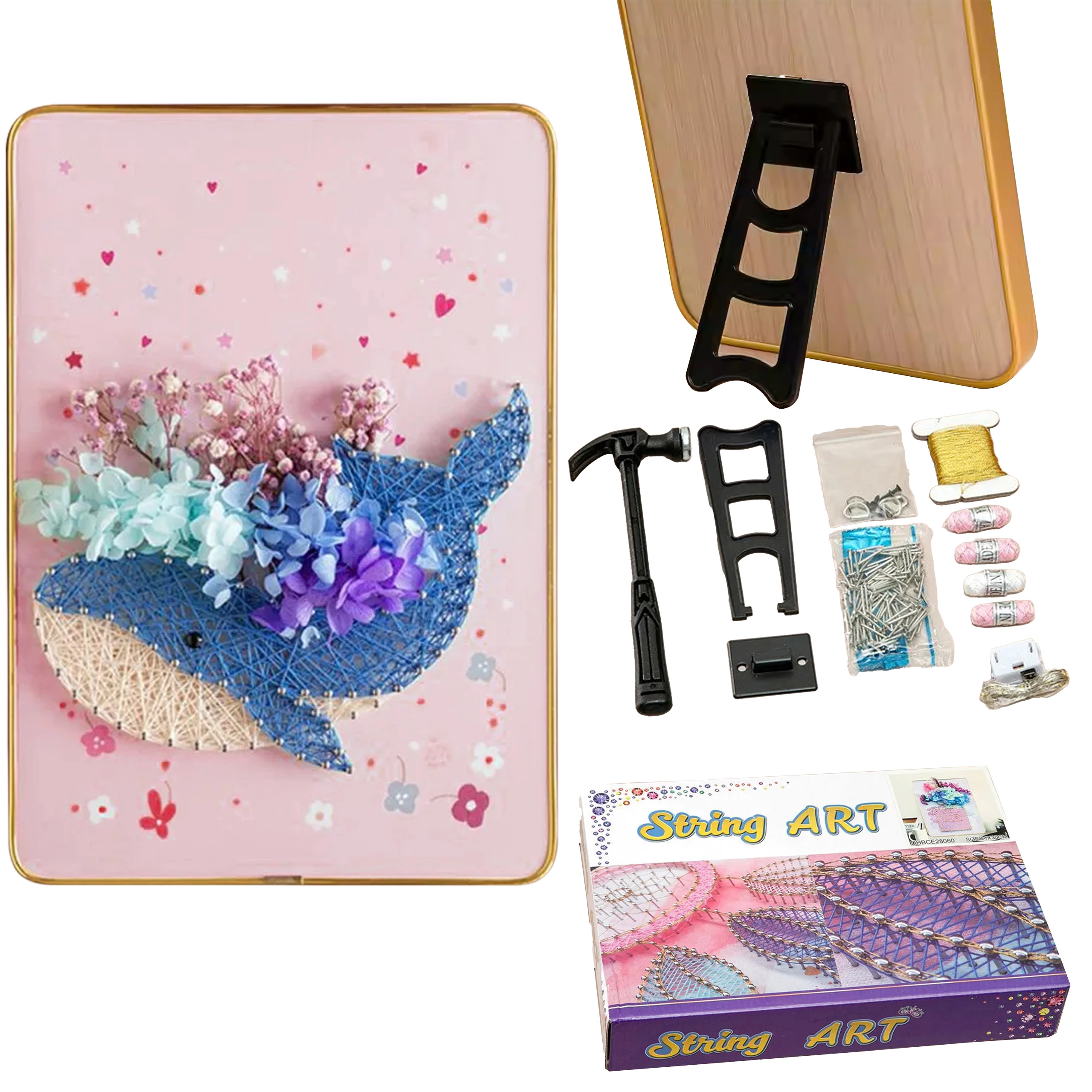 Kompletan DIY set sadrži podlogu u okviru, čavliće, konce i sitan alat. Počnite stvarati odmah nakon otvaranja – bez traženja dodatnih pomagala.