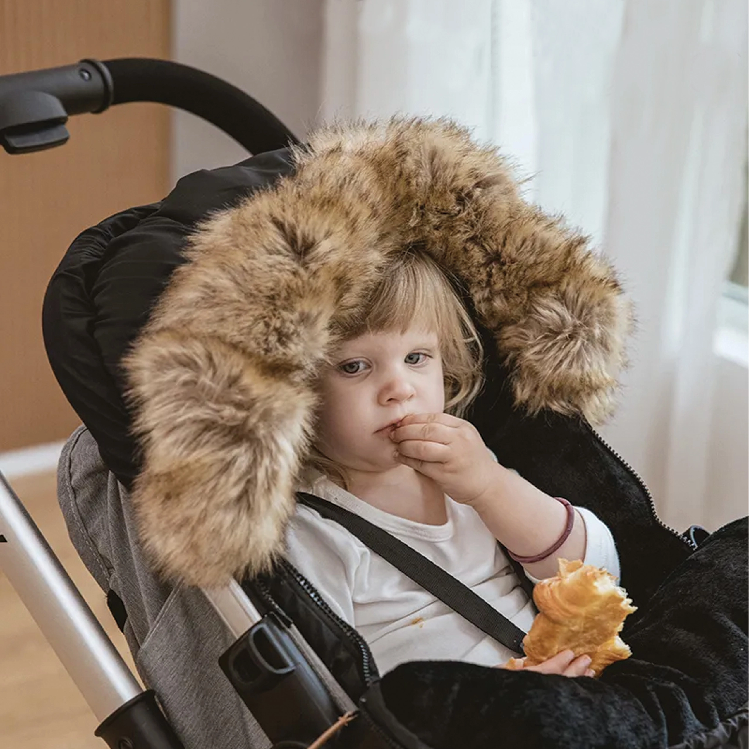 Snažna izolacija, meka podstava i kapuljača s krznom održavaju dijete toplim i tijekom zimskih šetnji. Idealno za spavanje i sjedenje.