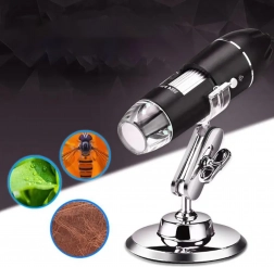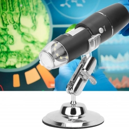 Kompaktni digitalni USB mikroskop s kamerom 2 MP nudi povećanje do 1600×, 8 integriranih LED dioda s kontinuiranom regulacijom i stabilan metalni stalak za precizno promatranje. Jednostavno se spaja na računalo putem USB-a, omogućuje fotografiranje i snimanje videozapisa te je idealan za školu, radionicu i kućno istraživanje.