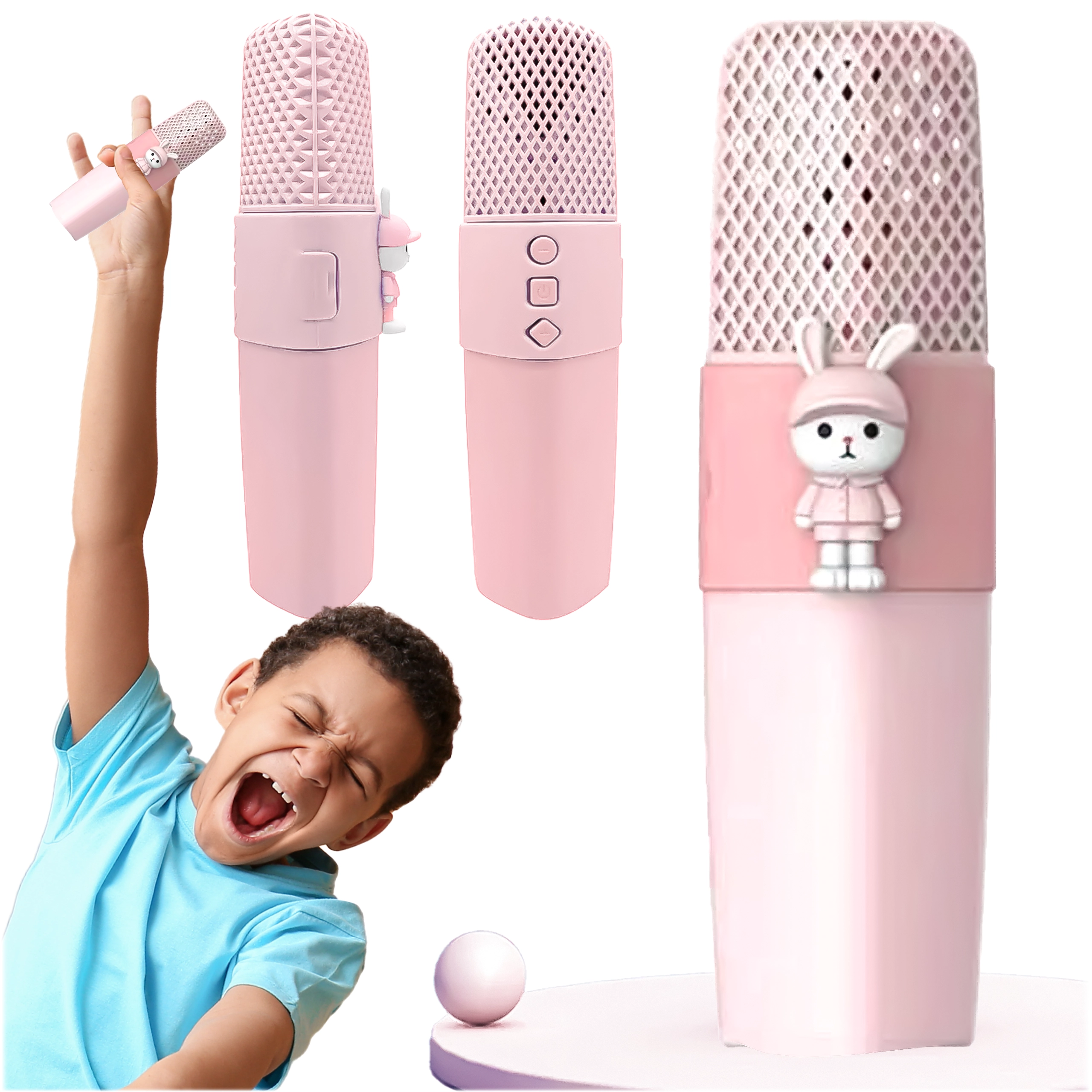 Ovaj preslatki dječji karaoke mikrofon s motivom zečića idealan je za prve pjevačke korake i kućne mini koncerte. Povežite ga s telefonom putem Bluetootha i upravljajte reprodukcijom izravno s mikrofona – preskakanje pjesama, pauza, nastavak i glasnoća doslovno su vam na dlanu. Silikonska površina osigurava siguran hvat i istovremeno štiti mikrofon od manjih udaraca.