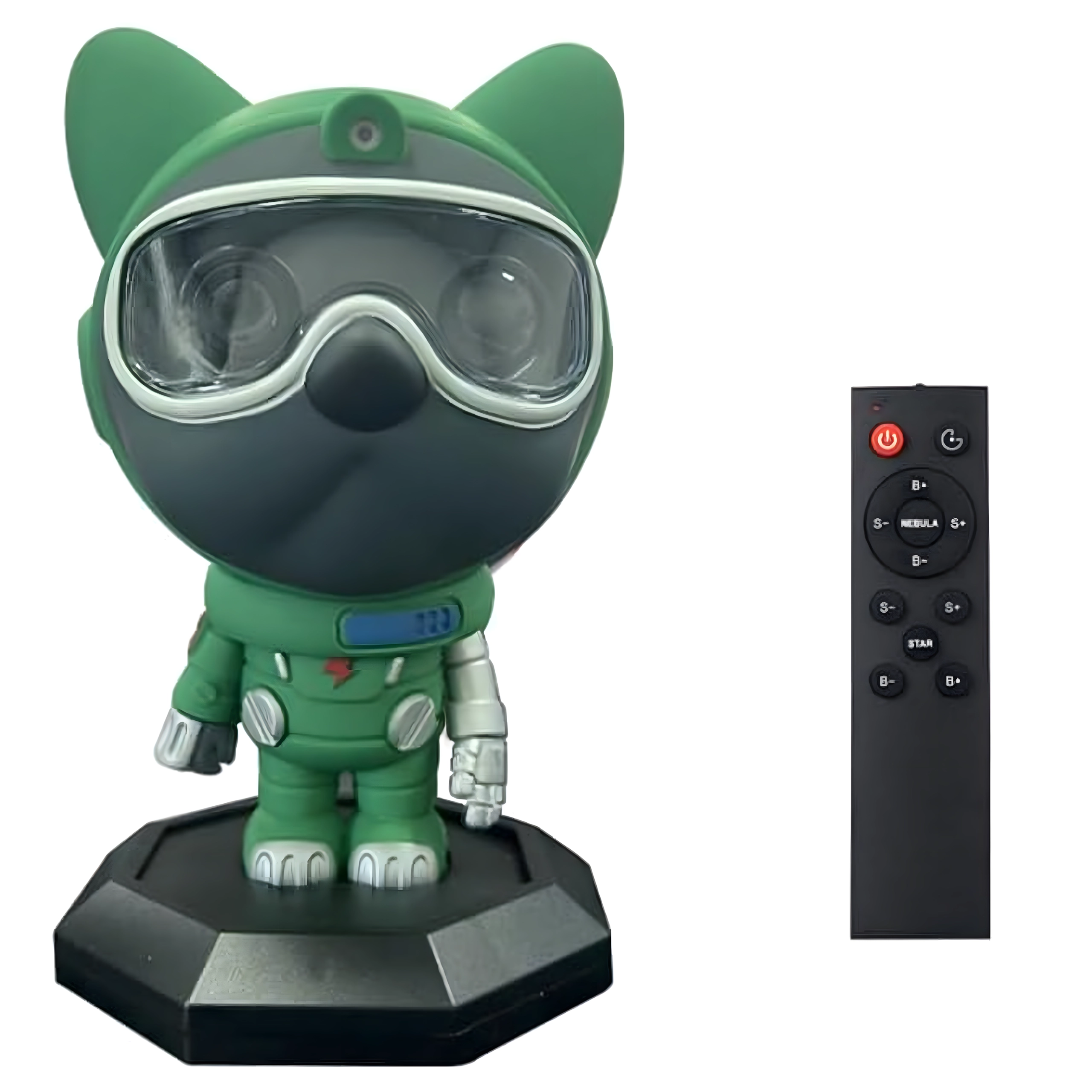 Slatki projektor zvijezda u obliku psa-astronauta pretvara dječju sobu u malo planetarij. Nudi 360° rotacijsku projekciju, šarene maglice, realistične zvijezde i praktično daljinsko upravljanje s timerom i podešavanjem svjetline – idealno kao dekoracija, pomoć pri opuštanju i noćna lampica.