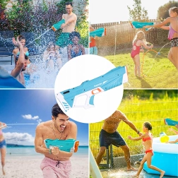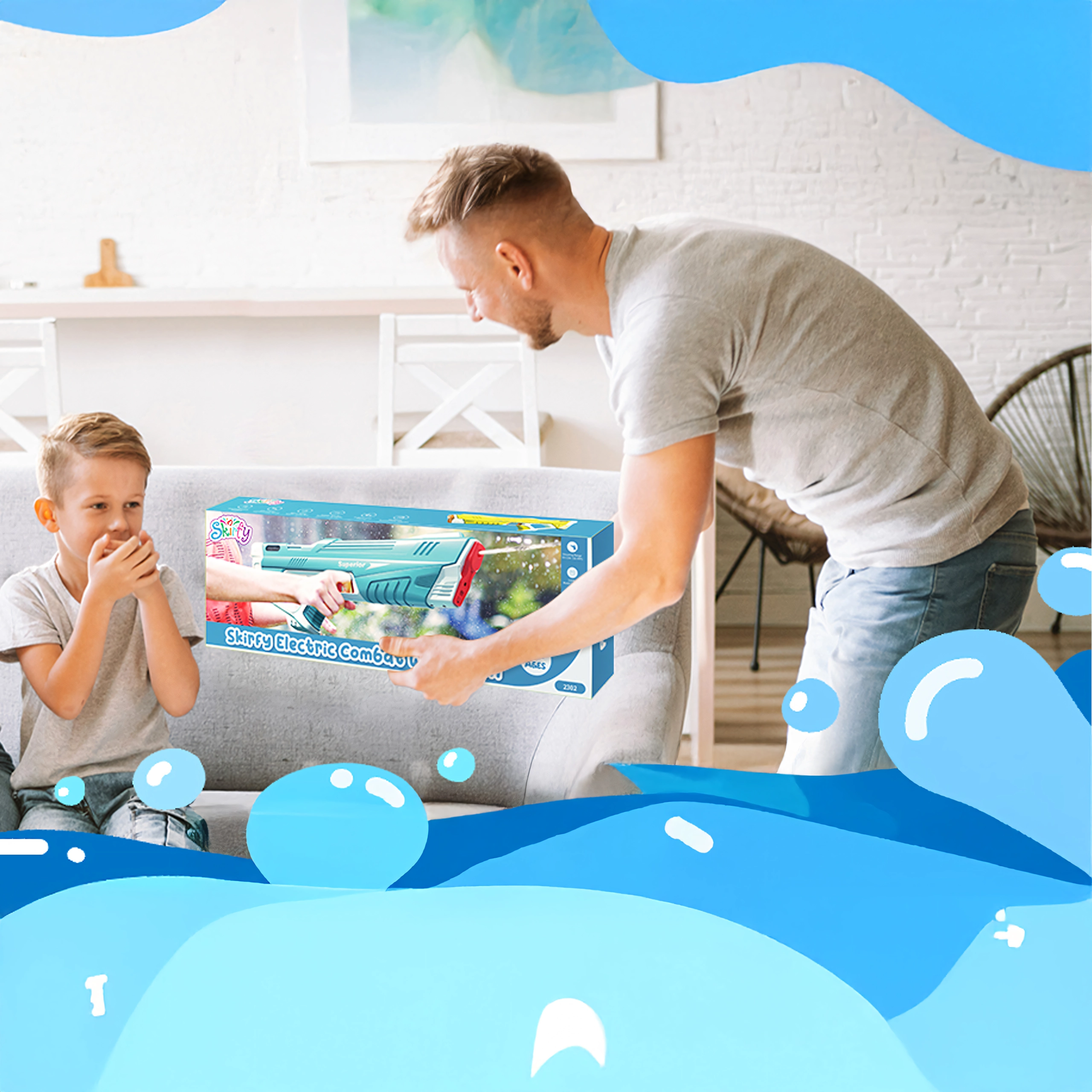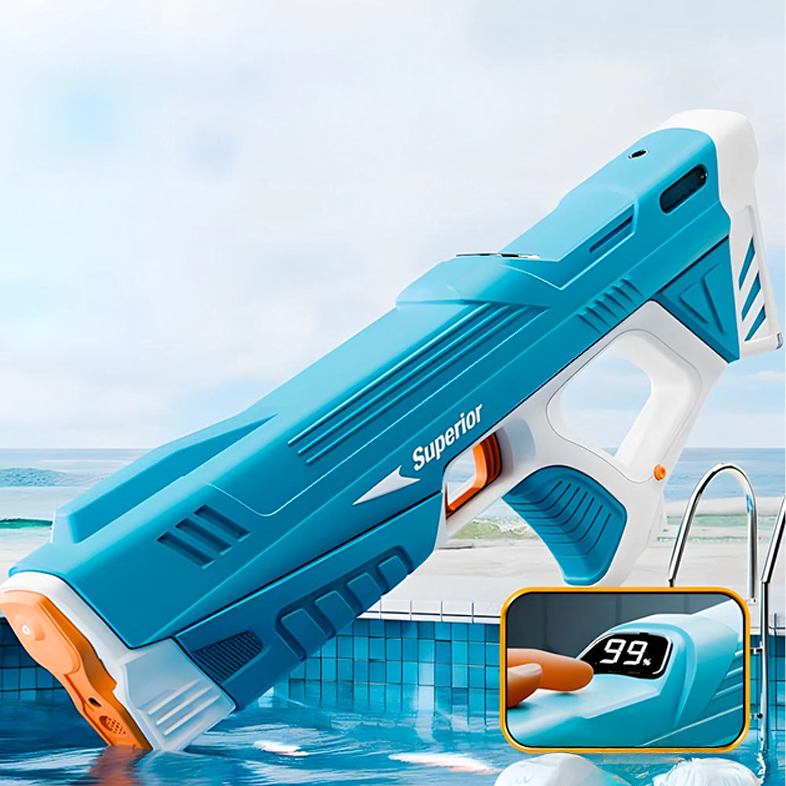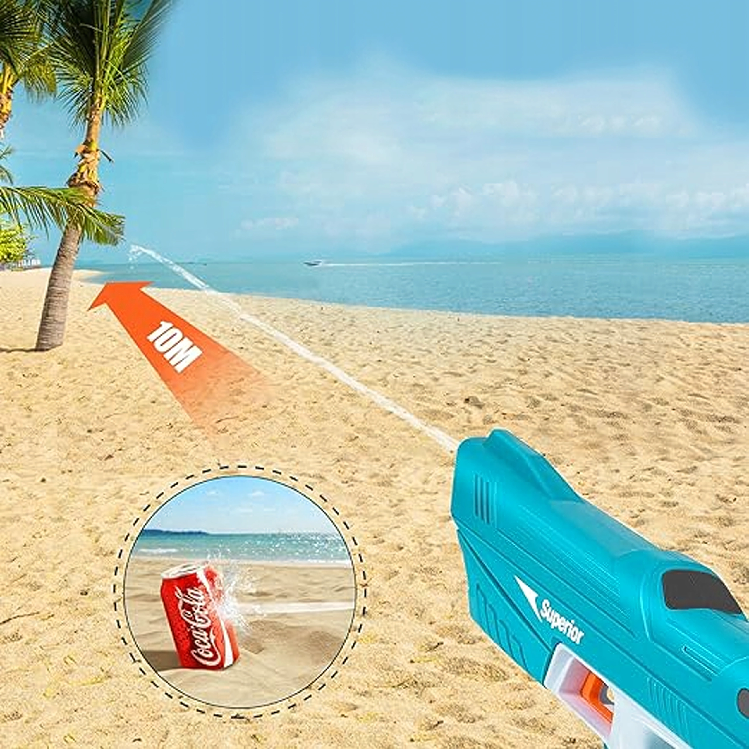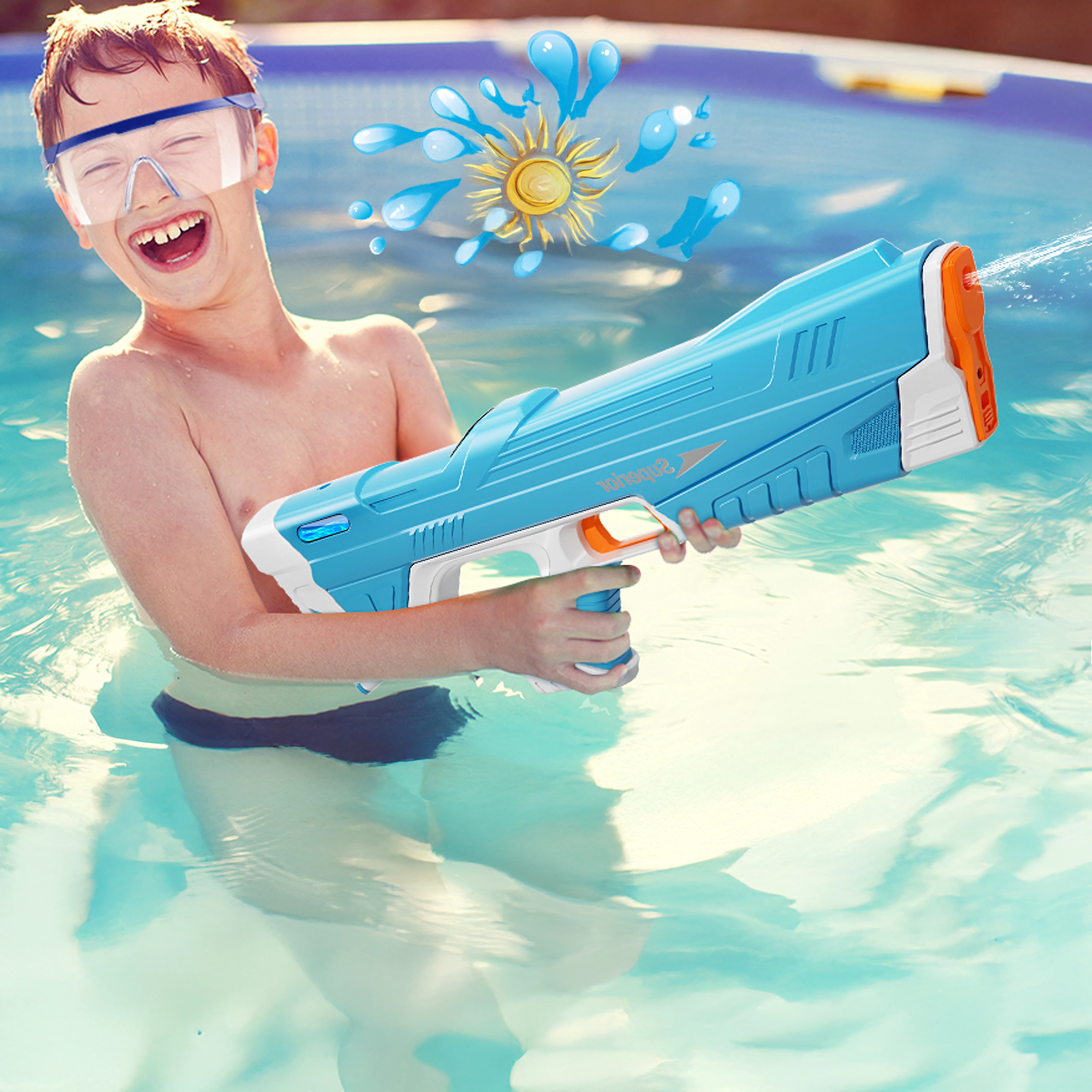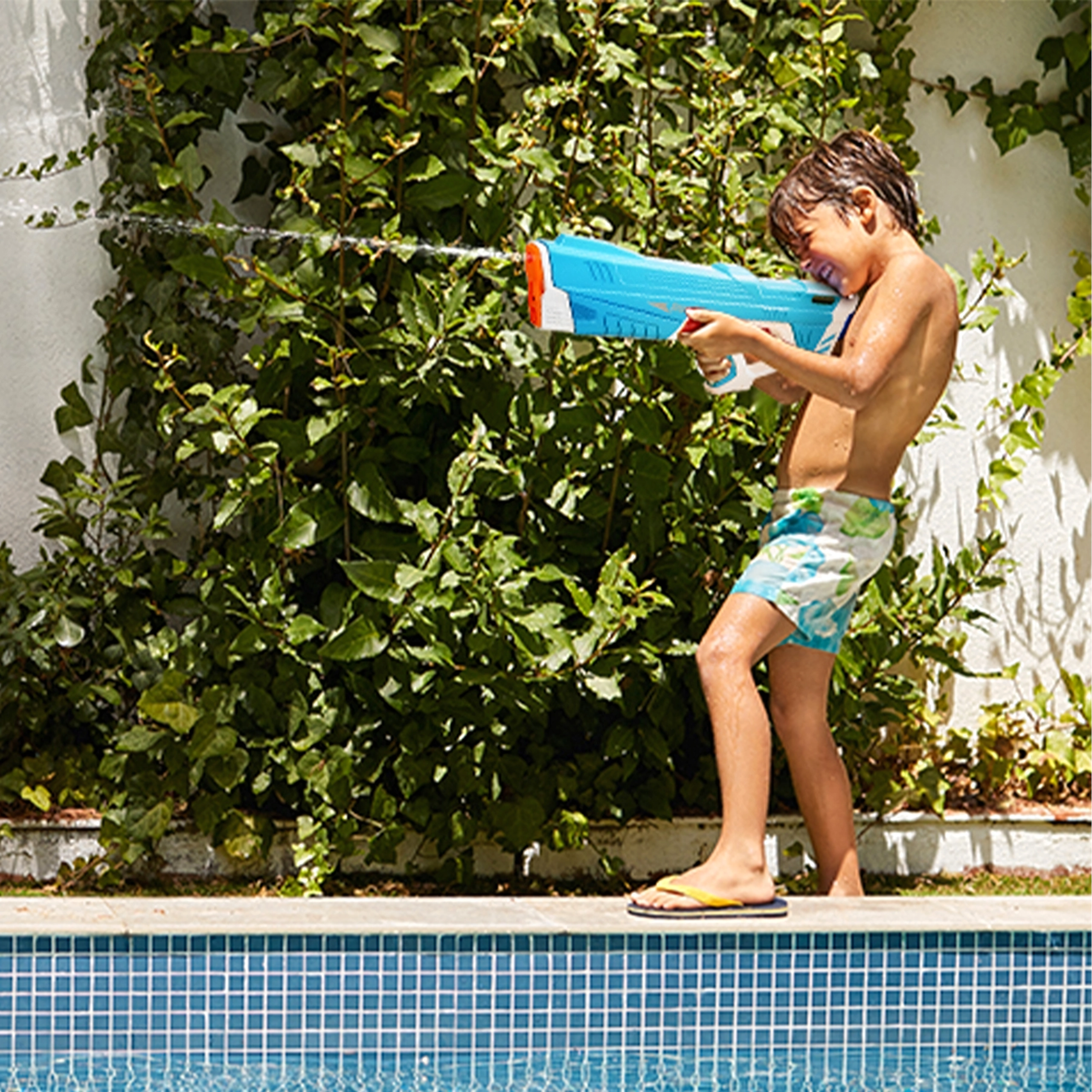 Brzo automatsko punjenje i pouzdan električni pogon pojednostavljuju upravljanje, tako da se djeca mogu usredotočiti samo na zabavu. Dugi domet mlaza do 10 m pretvara svaku igru u napetu vodenu bitku.