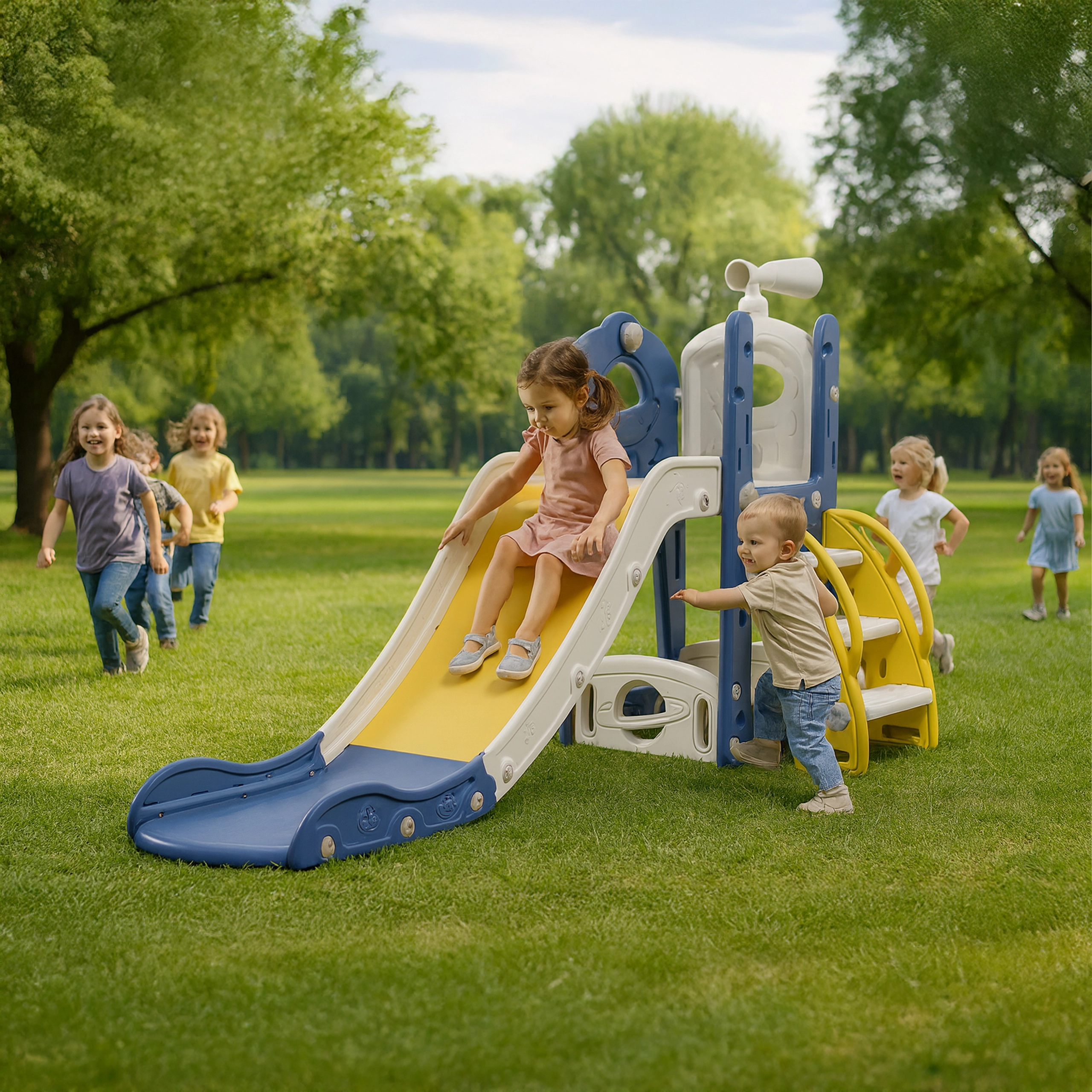 Integrirani koš za košarku i teleskop pretvaraju igru u avanturu – djeca vježbaju koordinaciju, preciznost i maštu.