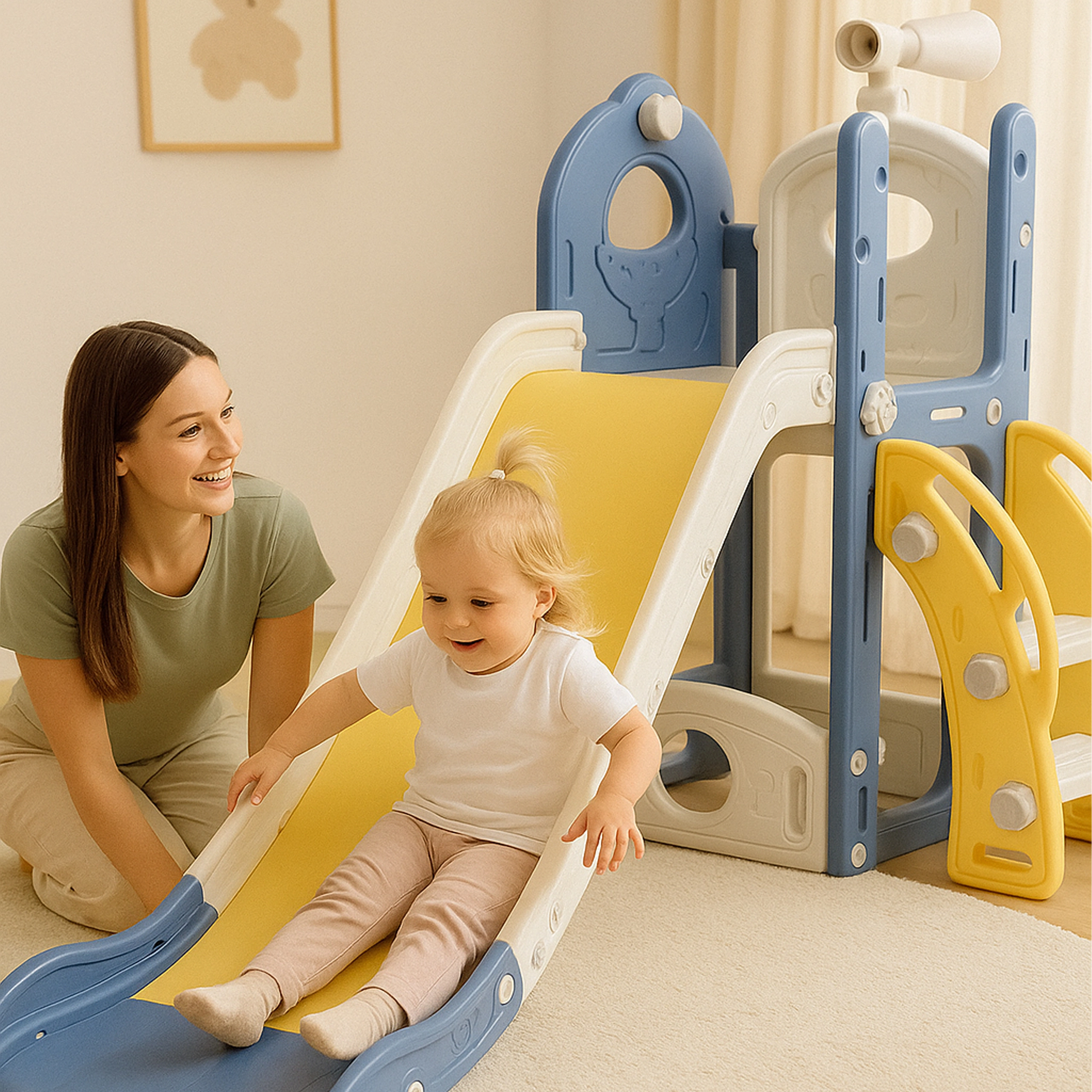 Ovaj univerzalni tobogan idealan je za dječju sobu, igraonicu i vrt. Spaja sigurnu igru s razvojem motoričkih vještina – djeca uživaju u penjanju po širokim stepenicama, pogledu s platforme i glatkom spuštanju po dugoj, glatkoj površini. Izdržljiva plastika sa zaobljenim rubovima i protuklizne stopice osiguravaju stabilnost i sigurnost.