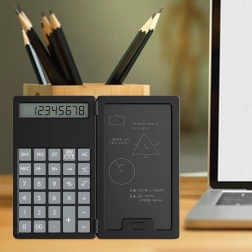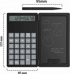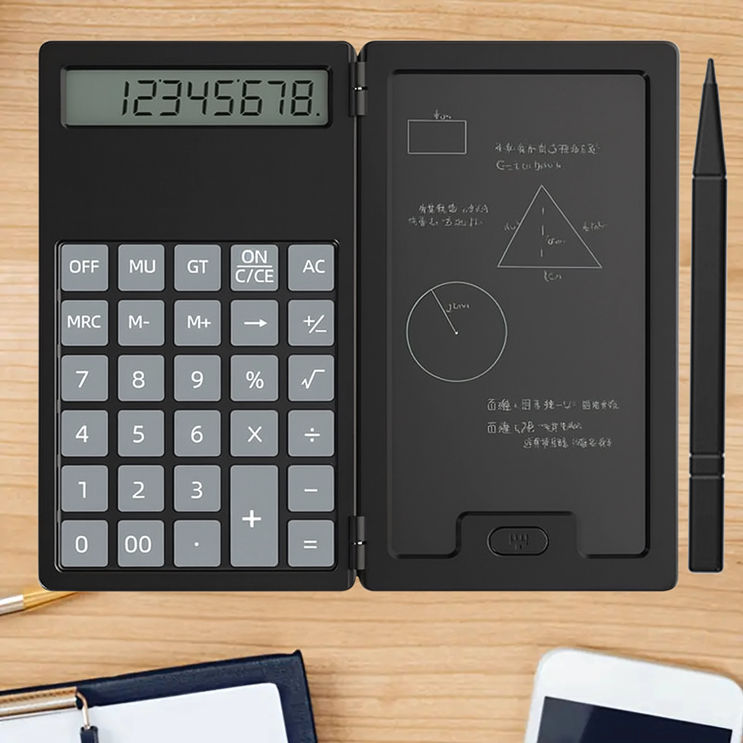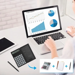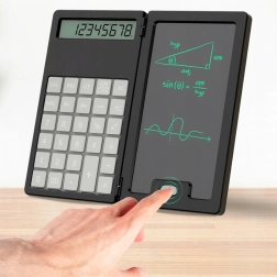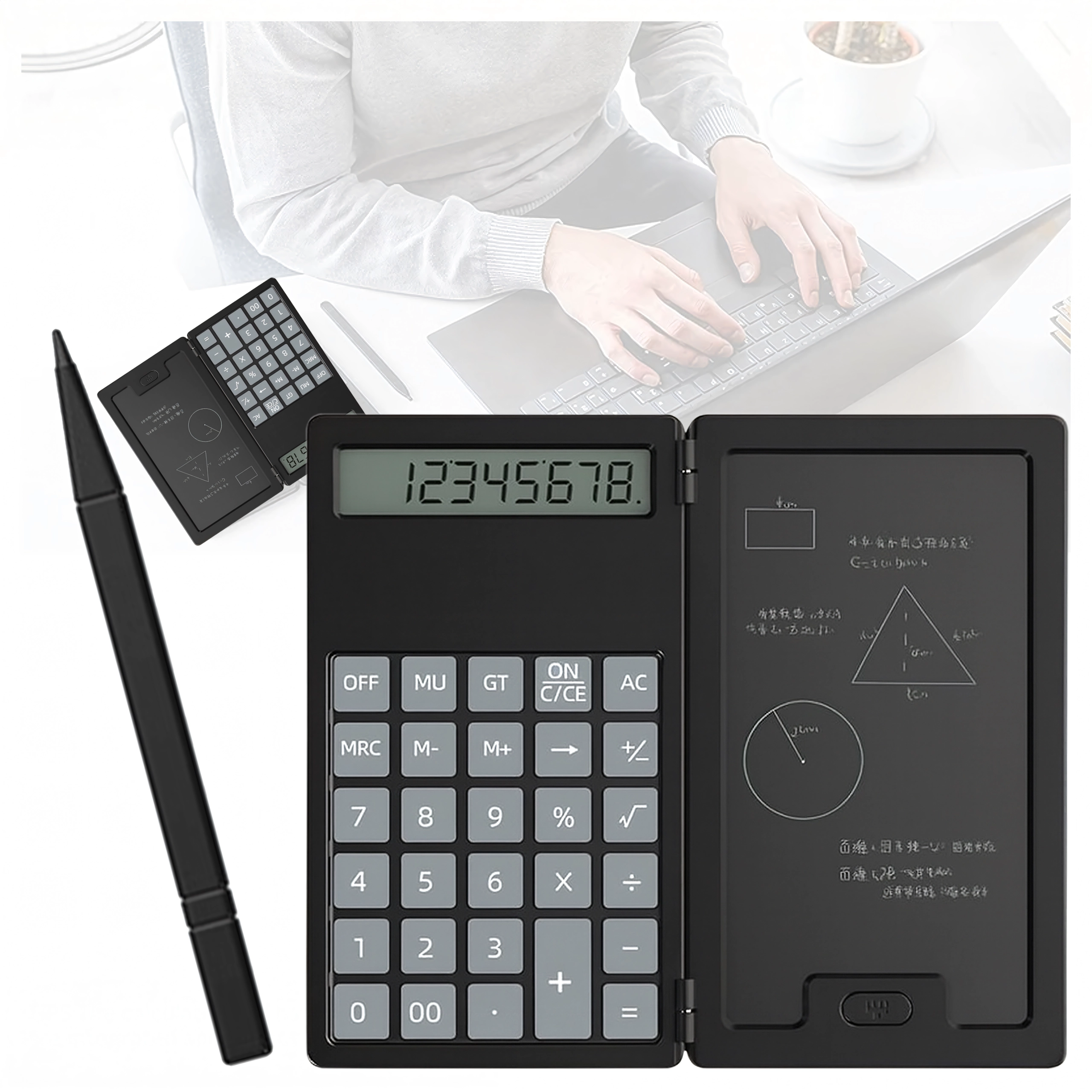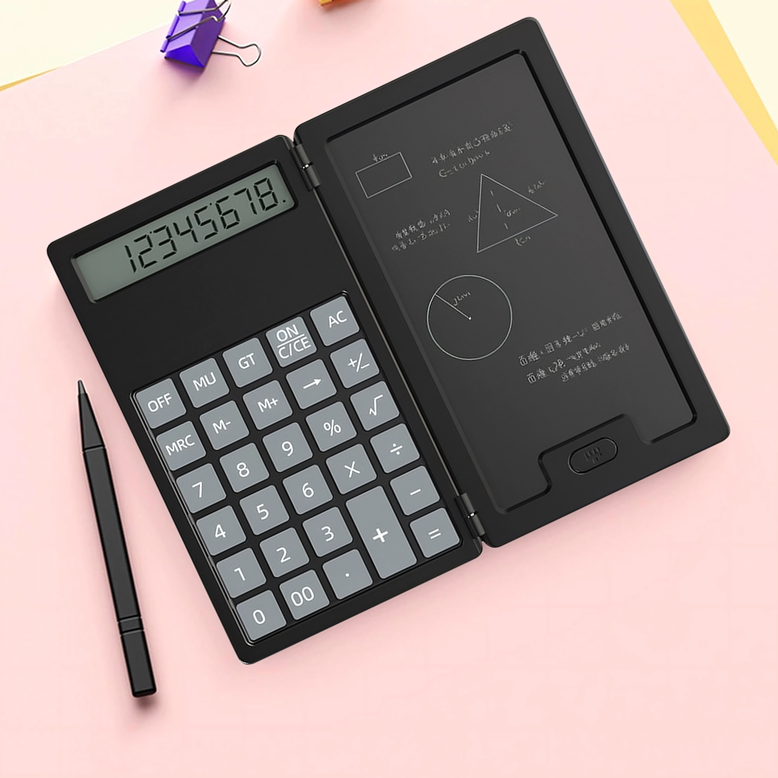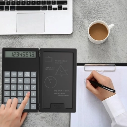 Ovaj pametni kalkulator sa sklopivim kućištem kombinira klasično računanje s praktičnom LCD pločom za bilješke. Zahvaljujući laganoj i tankoj konstrukciji lako ga možete spremiti u torbu ili džep i imati ga uvijek pri ruci za brze izračune i bilješke.