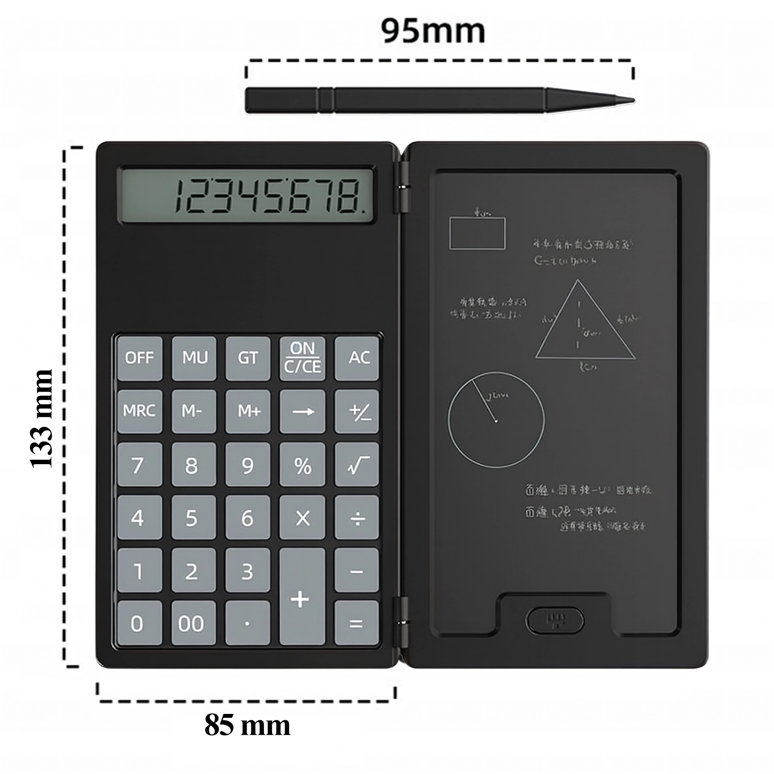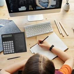 Kompaktni uređaj 2 u 1 spaja znanstveni kalkulator i LCD bilježnicu. Idealan za školu, ured i kućanstvo – računajte, zapisujte i spremajte bilješke bez papira, brzo i praktično na jednom mjestu.