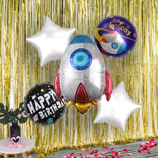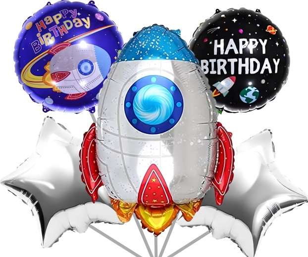 Pretvorite proslavu u nezaboravnu svemirsku misiju. Folijski baloni s motivima rakete, astronauta i blistavih zvijezda stvorit će dojmljivu dekoraciju koja će oduševiti male i velike istraživače. Zahvaljujući kvalitetnoj foliji baloni zadržavaju oblik i sjaj dulje vrijeme.