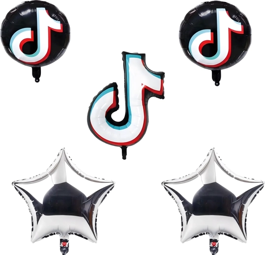 Stilisan set balona inspiriran platformom TikTok pretvorit će svaku proslavu u trendi događaj. Sadrži veliku folijsku notu 81,2 cm, 2 crna okrugla TikTok balona 45,7 cm i 2 srebrne zvjezdice – idealno za rođendane, party i foto-kutak.