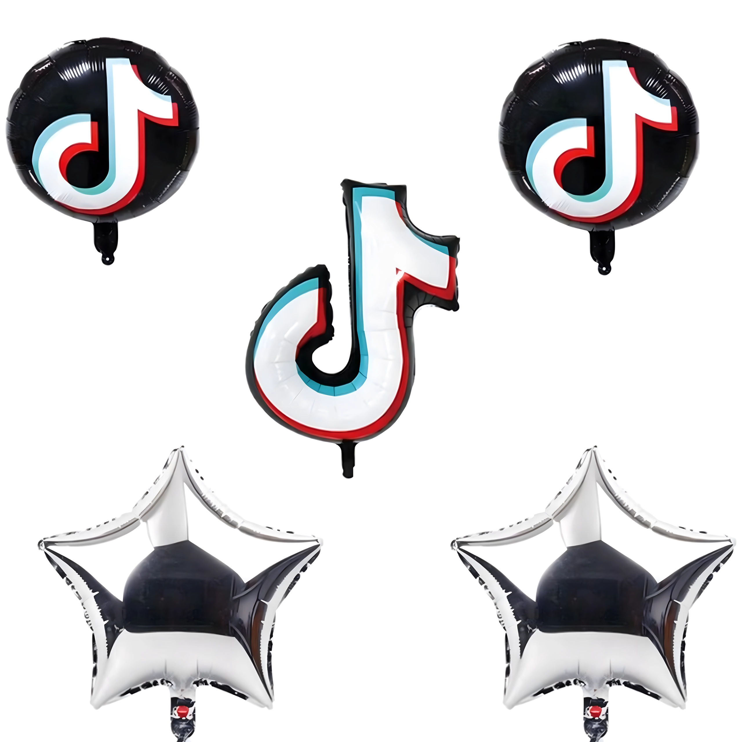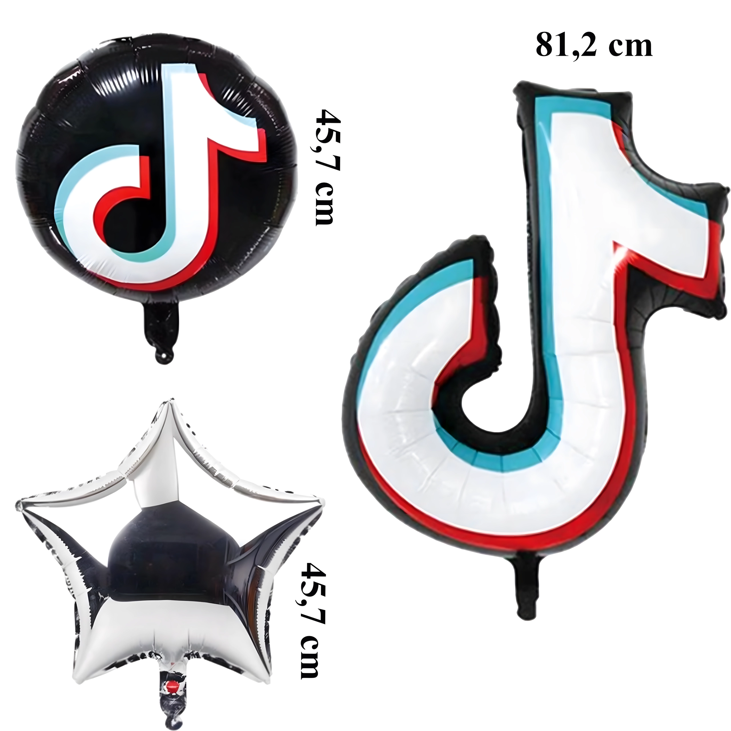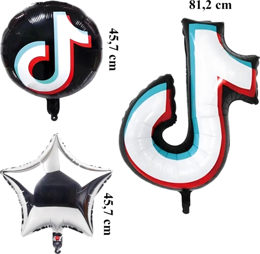 - Sadržaj seta: 1× folijska notica 81,2 cm, 2× crni okrugli TikTok balon 45,7 cm, 2× srebrna zvjezdica