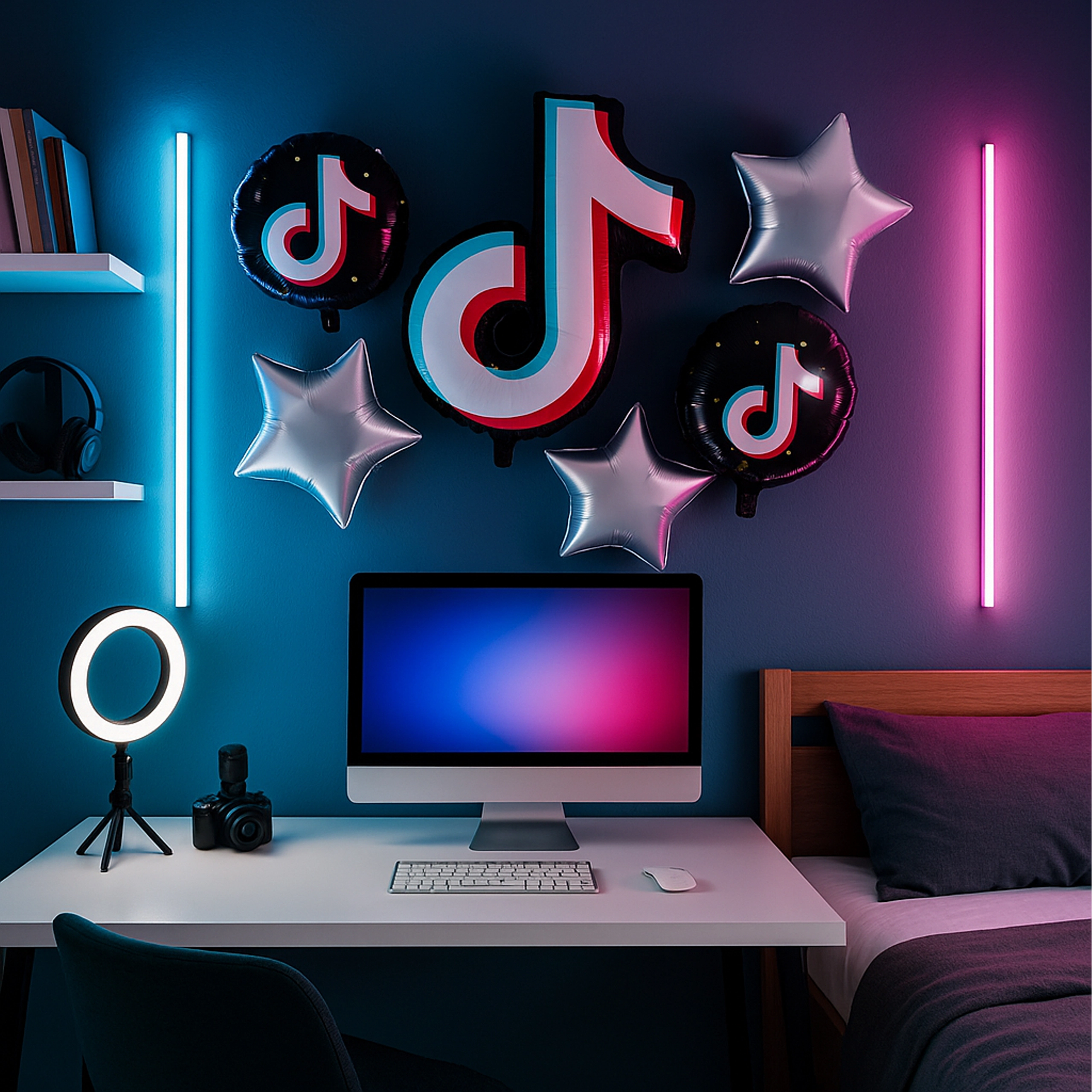 Stvorite atmosferu društvenih mreža na vlastitoj zabavi! Ovaj set balona s motivom TikTok daje dekoraciji moderan izgled i odlično odgovara teen partyjima, rođendanima i tematskim večerima. Velika folijska notica je upečatljivo središte, okrugli baloni s tiskom i srebrne zvijezde upotpunjuju dekor u savršen sklad.