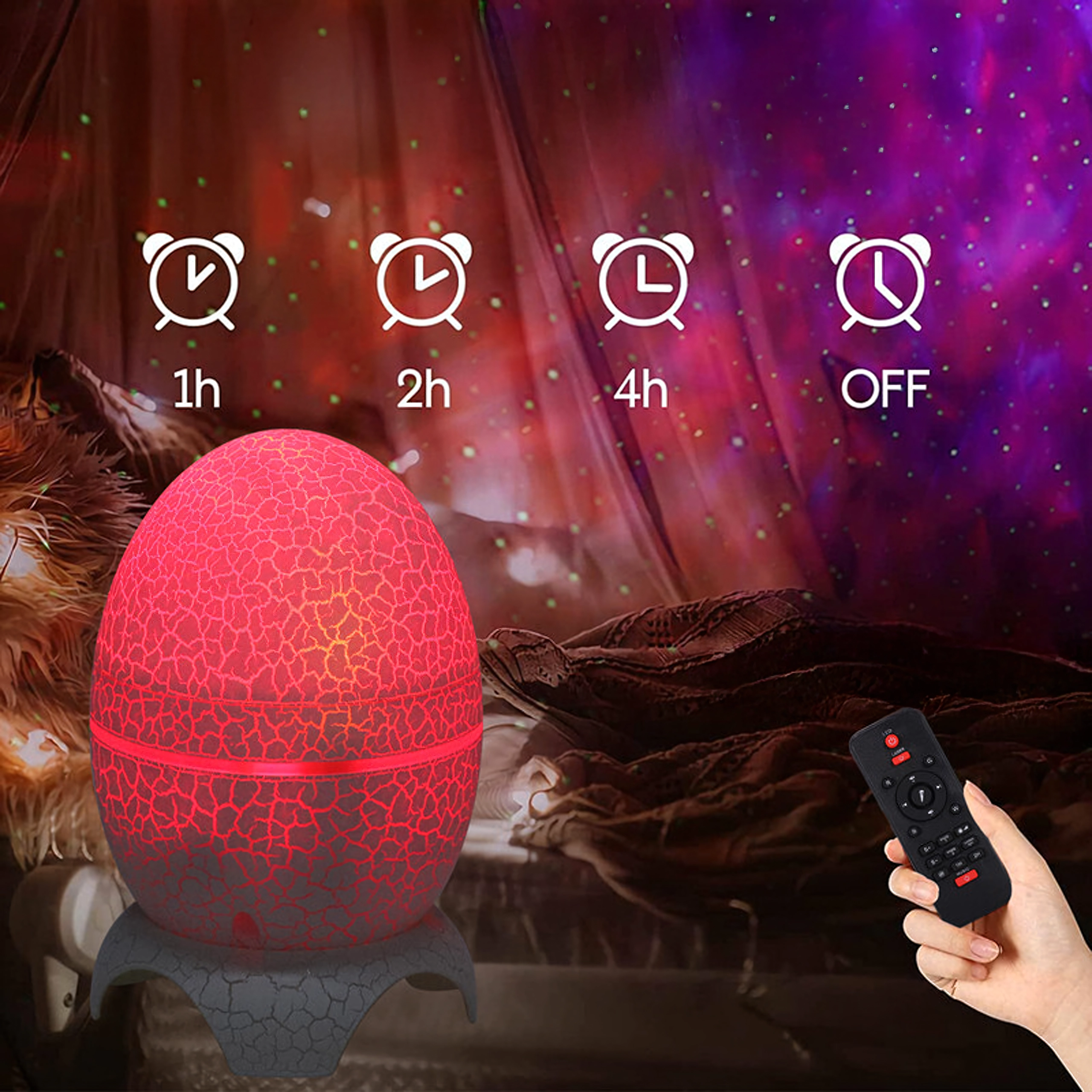 Pretvorite svoju sobu u šarenu galaksiju s glazbom u pozadini. Ovaj originalni projektor u obliku dinosaurovog jajeta spaja dizajnersku noćnu lampicu, projektor zvijezda i Bluetooth zvučnik u jednom. Stvorite magičnu atmosferu za opuštanje, spavanje i zabavu.